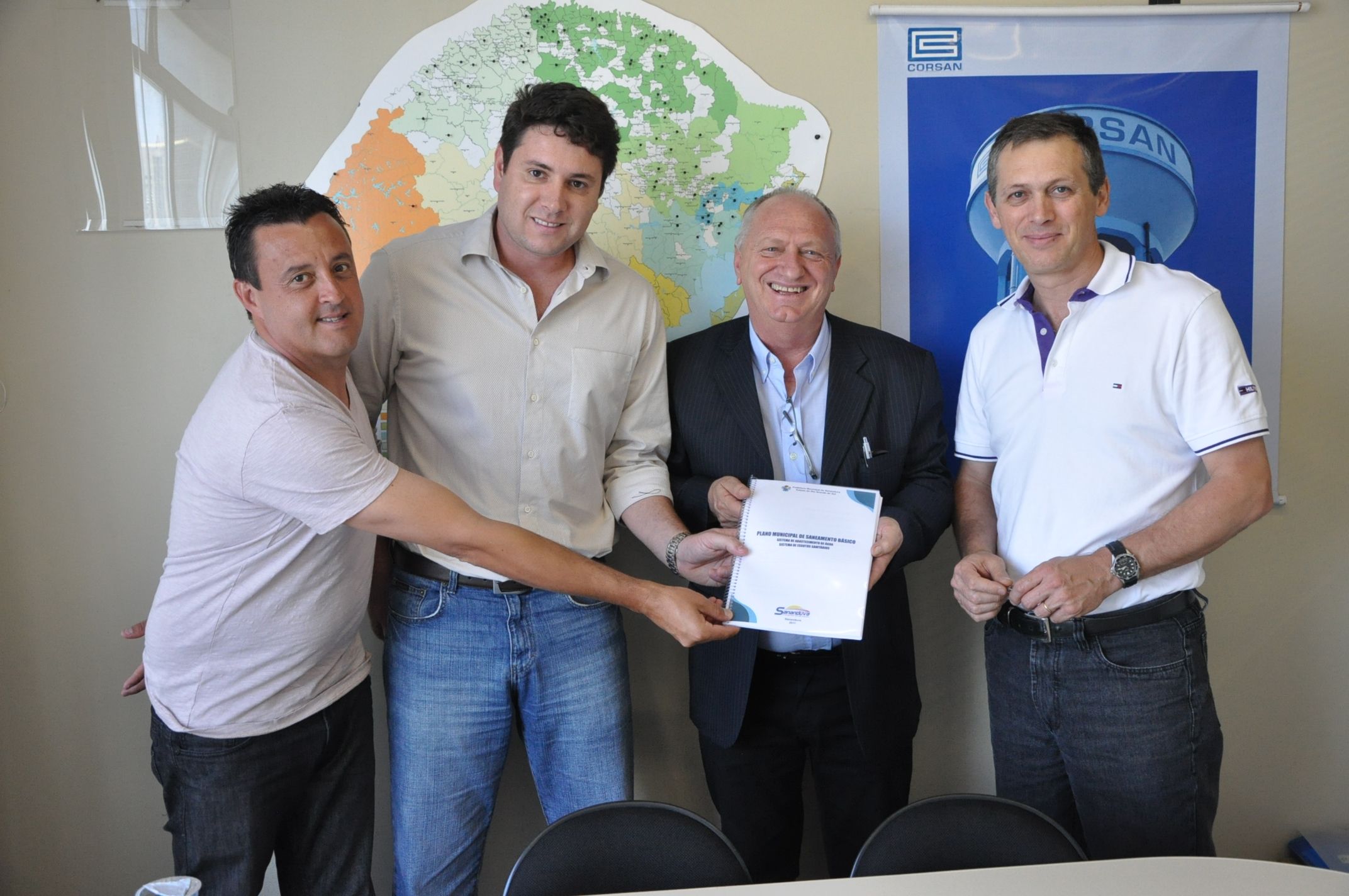 A administração pública municipal de Sananduva, através do vice-prefeito Leomar José Foscarini e do secretário de Serviços Urbanos Carlos José Picolotto, realizou a entrega oficial do Plano Municipal de Saneamento Básico à Corsan, em Porto Alegre.