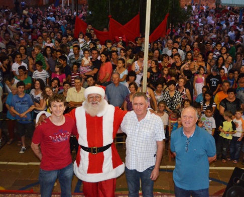 Papai Noel do Brasil chegou de helicóptero trazendo magia e encanto a todos os sananduvenses. O presidente da ACISAN, Marcio Saggioratto, fez uso da palavra, assim como o prefeito municipal, Antônio Roberto Caldato, que agradeceu a comunidade presente, entregou a chave do Município ao Papai Noel e declarou aberta as comemorações do Natal 2012.