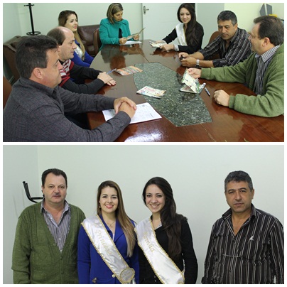 A Rainha do evento Daiane Rossi e a 1ª Princesa Isadora Zulpo Spanholli, acompanhadas do chefe de gabinete Waldemar Porto Cardoso, estão fazendo um roteiro na região para convidar os prefeitos e promover o evento do Munícipio vizinho, que terá diversas atrações.