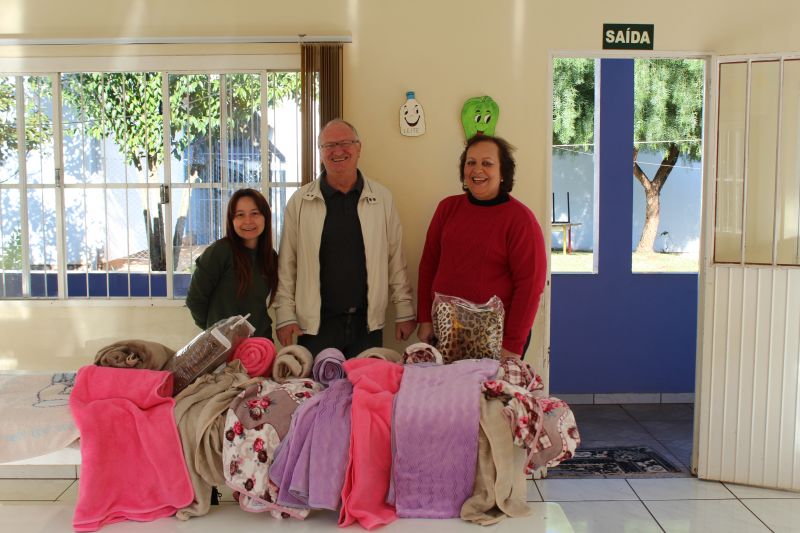 Na manhã dessa segunda-feira (08) o secretário municipal de Educação e Cultura Leomar José Foscarini acompanhado de sua equipe efetuaram a entrega de cobertores novos nas escolas municipais de educação infantil da rede pública de ensino, os quais foram adquiridos por meio de campanha interna das secretarias municipais.
