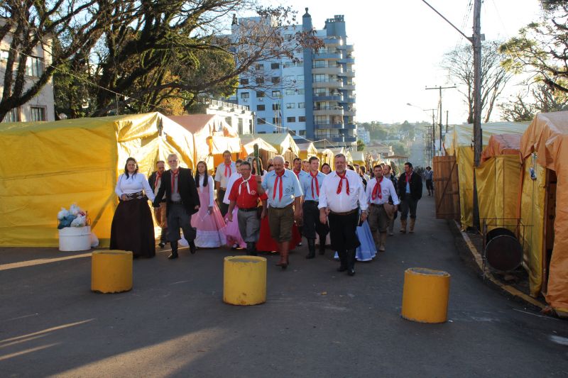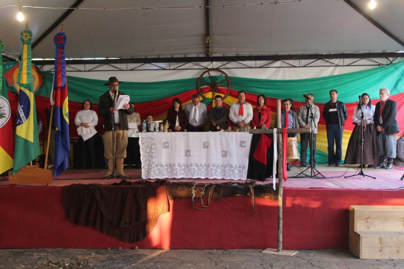 Na abertura oficial, ocorrida no domingo (13), o prefeito Antônio Roberto Caldato destacou em seu discurso a volta às origens e o heroísmo dos farrapos. “Essa volta às origens tem produzido sucessivas gerações de homens e mulheres de bem, que tanto contribuíram e contribuem para o desenvolvimento social e econômico desta terra”. Finalizou agradecendo o empenho da comissão organizadora e das entidades participantes desejando a todos uma boa Semana Farroupilha. Logo após a abertura oficial, os gaúchos e gaúchas presentes fortaleceram sua fé e pediram a benção do Patrão Celestial, com a missa crioula celebrada pelo Padre Edio Brezolin.
