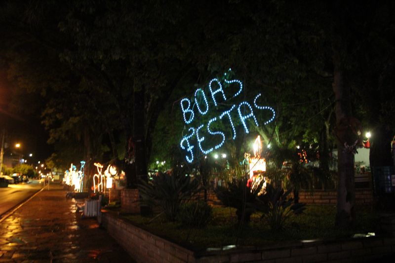 A Praça Central Antônio Navarini esta maravilhosamente iluminada com enfeites natalinos reaproveitados de anos anteriores e feitos com material reciclável.