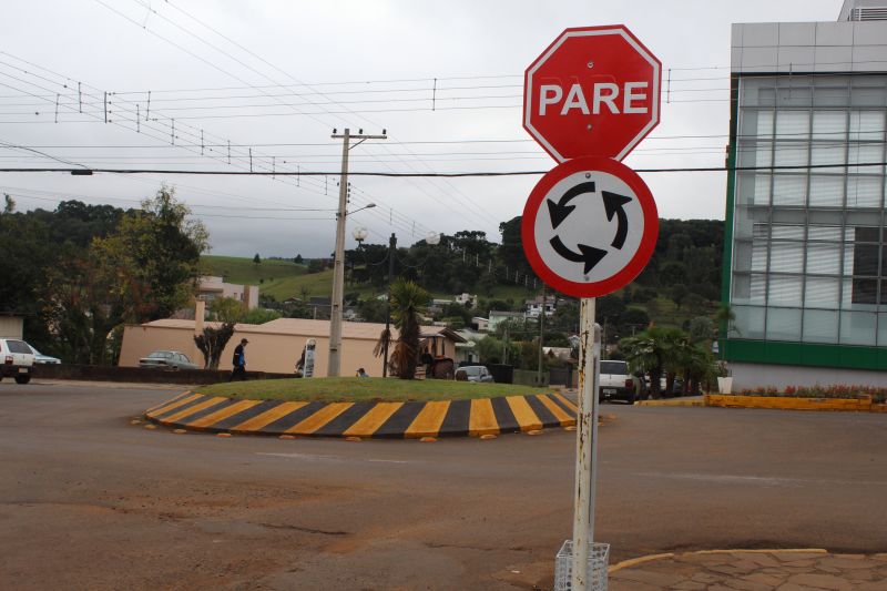 Foram colocadas as Placas de R-1 (Parada Obrigatória) e Placas R-33 (Sentido de Circulação na Rotatória). Com essas mudanças a preferência é para quem está circulando por ela, conforme prevê o Código de Trânsito Brasileiro em seu Artigo 29.