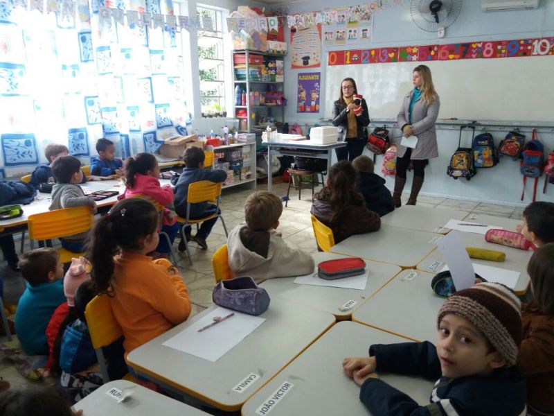 Equipe de Saúde Bucal da Unidade de Saúde São Cristóvão realiza visita na Escola Municipal de Ensino Fundamental Gentil Antônio Tonial. Essa parceria entre Saúde e Educação visa desenvolver o hábito de higienização bucal precoce; tornar prazerosa a visita ao dentista, evitando possíveis traumas; instruindo sobre a utilização correta da escova de dente e do fio dental, quando indicado; além de reduzir custos no futuro, com tratamentos odontológicos mais complexos.