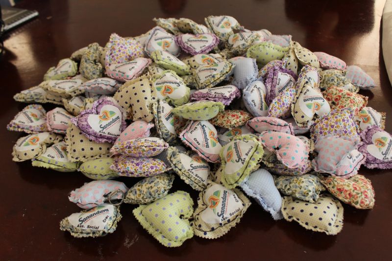 Através da parceria entre a Secretaria de Educação, Cultura e Desportos e Secretaria de Assistência Social e Habitação, com o objetivo de divulgar o trabalho do Cras – Centro de Referência de Assistência Social, na manhã de quarta-feira (06), a secretária de Educação esteve nas novas instalações do Cras, que devem ser inauguradas em breve, para receber os mimos. Ao todo, foram 1.212 chaveiros em formato de coração confeccionados pelos grupos do Paif – Programa de Atenção Integral a Família, do Serviço de Convivência e Fortalecimento de Vínculos da Criança e do Adolescente e equipe de colaboradores da Secretaria de Assistência Social e Habitação. Por vários dias, a coordenadora do Cras, Lucivane Dametto, orientou os grupos na produção artesanal dos mimos que abrilhantaram a apresentação das escolas que aconteceu na quinta-feira (07), no Ginásio Victor Camozzato, por ocasião das comemorações da Semana da Pátria.
