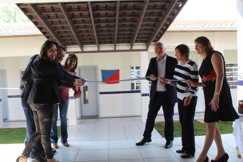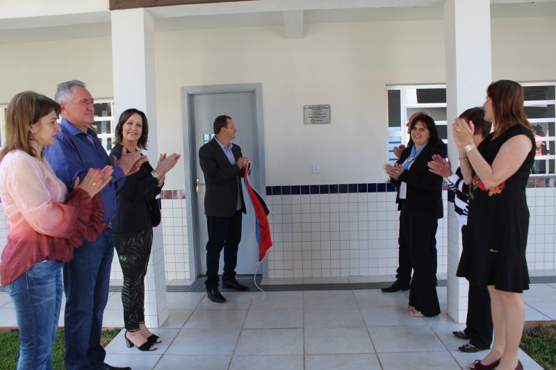O descerramento da fita inaugural da ampliação da Escola Municipal de Ensino Fundamental Santa Teresinha ficou a cargo da diretora da Escola Santa Teresinha, Neiva Maria Wrzesinski Benetti, ex-prefeito municipal Antonio Roberto Caldato, a secretária de Educação, Cultura e Desportos, Izabel Cristina Barbizan Vastrinche, o vice-prefeito Loevir Fidêncio Antunes Benedetti e o prefeito Leomar José Foscarini. Na oportunidade o prefeito Leomar agradeceu a confiança e a coragem da gestão do ex-prefeito municipal Antonio Roberto Caldatto por ter iniciado em sua administração a construção desta obra. “Além de um belíssimo ambiente educacional, o espaço da Escola Santa Teresinha é para ser utilizado por toda a comunidade. Há o parque infantil recentemente instalado, a pista de caminhada, o campo de futebol, a academia ao ar livre. Queremos que aqui as pessoas encontrem mais uma opção para lazer e entretenimento, usando com responsabilidade e carinho”, concluiu o prefeito reconhecendo às Irmãs da Congregação São José pela idealização da Escola e também todos que se envolveram na construção da nova obra. O pe. Édio Brezolin e o pastor da Igreja Assembleia de Deus, João Telles, proferiram uma bênção ao novo ambiente.