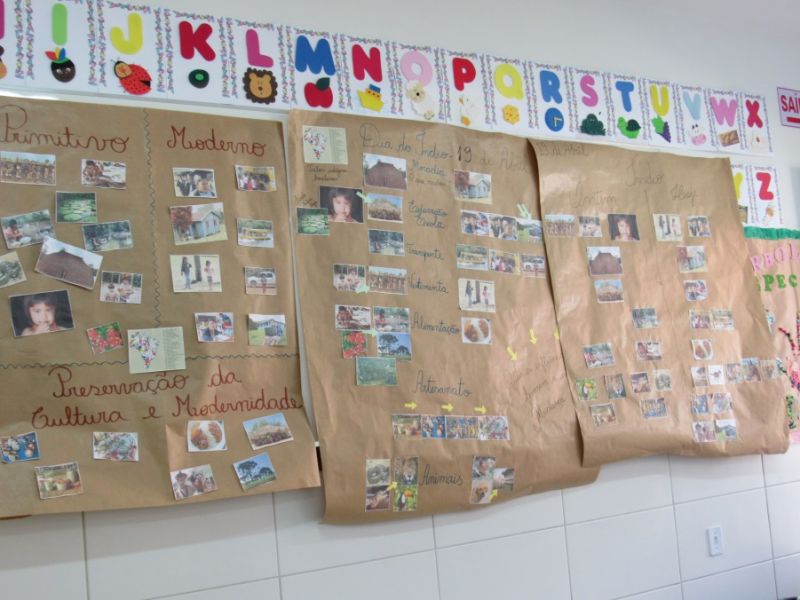 Após foi realizada uma atividade prática através de painéis que mostram as diferentes realidades das tribos indígenas brasileiras. Ao final as participantes compartilharam algumas sugestões de atividades a serem desenvolvidas com os alunos.