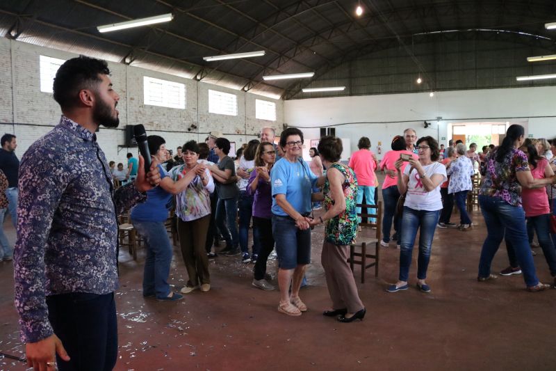 A palestra show conduzida por Deivid Freitas trouxe momentos de descontração, reflexão e informação. Centenas de idosos prestigiaram o evento que contou com a presença do prefeito Leomar José Foscarini, primeira-dama Maria Lucia Tonial Foscarini, presidente da Câmara de Vereadores Odair Cirino Rodrigues, secretário de Assistência Social e Habitação Leonardo Ritti, coordenadora do CRA, Lucivane Dametto, secretária de Educação, Cultura e Desportos, Izabel Cristina Barbizan Vastrinche, secretário de Agricultura, Meio Ambiente e Desenvolvimento Econômico, Adelar Zanin, e a vereadora Eliani Mezadri.