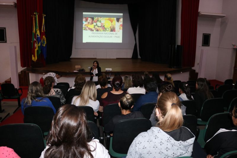Foram cerca de 50 participantes, entre diretores, merendeiras e funcionários que atuam nos serviços gerais. O trabalho de capacitação foi conduzido pela nutricionista responsável técnica pela alimentação escolar do Município, Luciana Curzel. A secretária de Educação, Cultura e Desportos, Izabel Cristina Barbizan Vastrinche, participou do encontro que contou também com a presença do prefeito Leomar José Foscarini. “Queremos que vocês se comprometam em prestar um bom serviço, que estejam dispostos a melhorar e aprender a cada dia”, solicitou.