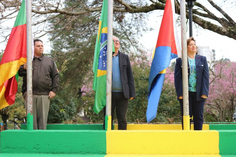 Com a participação do prefeito Leomar José Foscarini, primeira-dama Maria Lucia Tonial Foscarini, vice-prefeito Loevir Benedetti, secretária de Educação, Cultura e Desportos, Izabel Cristina Barbizan Vastrinche, presidente da Câmara de Vereadores Eliani Mezadri, sargento da Brigada Militar Luiz Fernando Dutra, demais vereadores, secretários municipais, diretores, professores, alunos e dirigentes de entidades foi realizada a abertura da Semana da Pátria 2019.