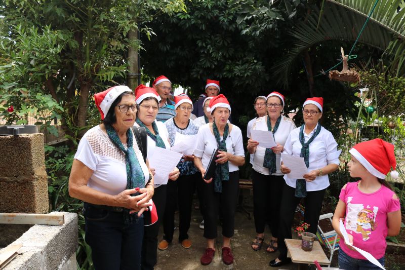 Na tarde desta segunda-feira, 09/12, integrantes do Coral da Terceira Idade - Viva Bem A Idade Que Você Tem, acompanhados da primeira-dama Maria Lucia Tonial Foscarini, realizaram cantatas natalinas pela cidade, programação que faz parte do Natal Solidário 2019.