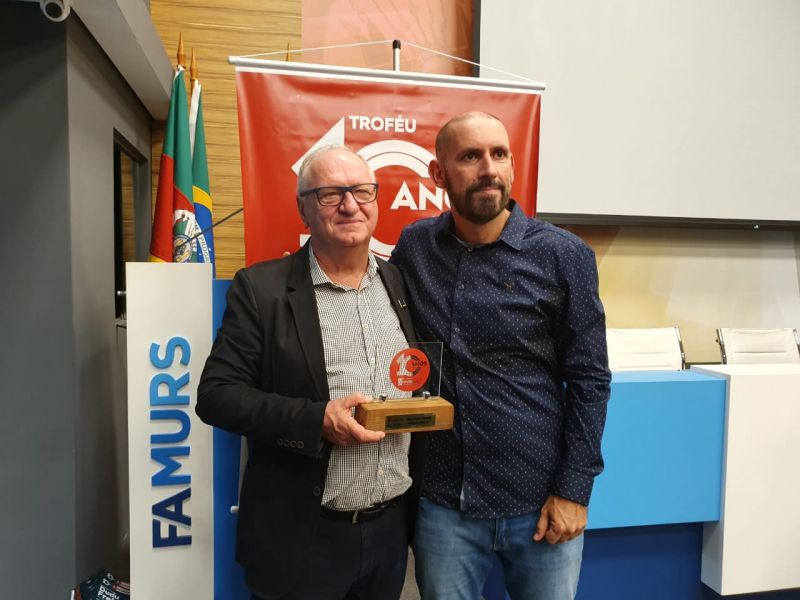 O prefeito Leomar José Foscarini recebeu na quarta-feira (11), na Famurs - Federação das Associações de Municípios do Rio Grande do Sul, em Porto Alegre, o troféu como gestão destaque estadual 2019. A premiação é um reconhecimento público pelo desempenho do Governo de Sananduva.