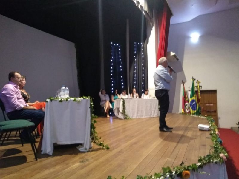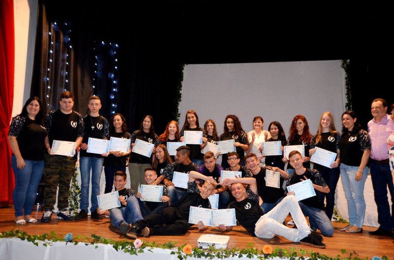 O evento aconteceu dia 18 de dezembro, reunindo pais, alunos, professores e funcionários das escolas que lotaram a Casa de Cultura. Foram 73 alunos das cinco turmas de formandos que receberam o Certificado de Conclusão do Ensino Fundamental. A cerimônia contou com a presença do prefeito Leomar José Foscarini, vice-prefeito Loevir Benedetti e esposa Suzana Benedetti, secretária de Educação, Cultura e Desportos, Izabel Cristina Barbizan Vastrinche, e das diretoras Cristiane Zenere Carissimi, Lucidiana Rafagnin, Denise Ana Baroni de Oliveira e Neiva Maria Wrzesinski Benetti.