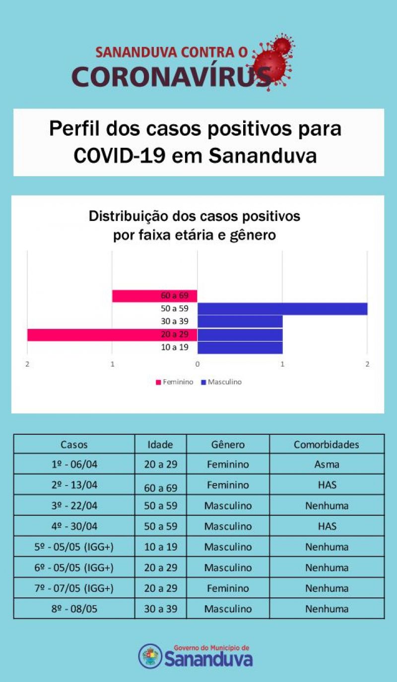 O Governo do Município de Sananduva, através da Secretaria de Saúde e com o apoio do Hospital Beneficente São João, apresenta informações estatísticas semanais referentes ao novo coronavírus - Covid-19. O objetivo é dar transparência às informações relacionadas à doença.