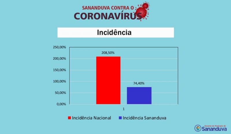 Comparação desse coeficiente com a média nacional: Incidência Nacional: 208,5% e Incidência Sananduva: 74,4%