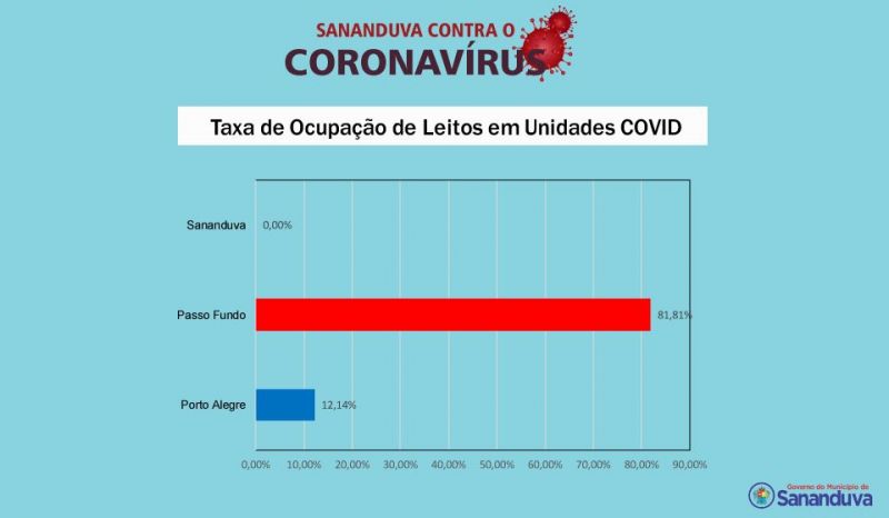 Taxa total de ocupação de leitos em Passo Fundo: 81,81% e Taxa total de ocupação de leitos em Porto Alegre: 12,14% (atualizado em 29/05 às 11h50min)