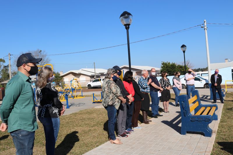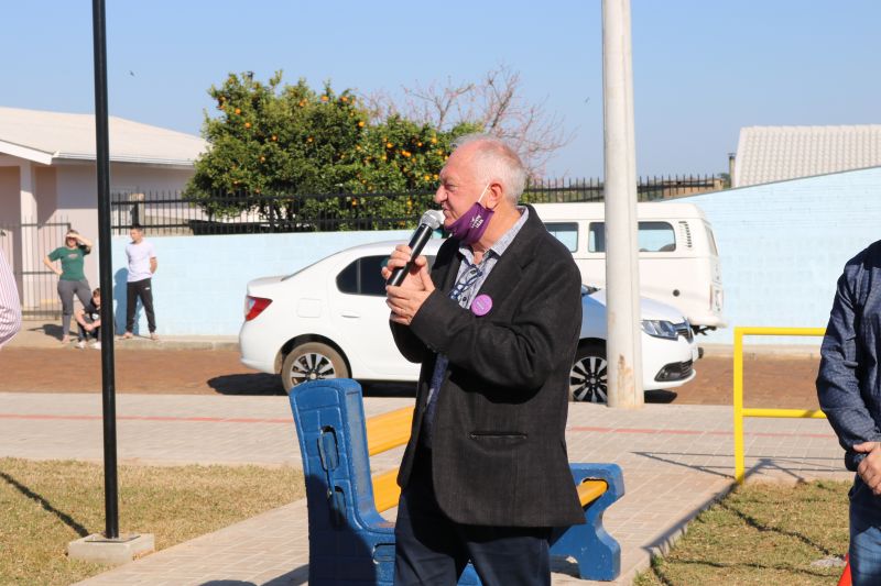 O vice Loevir Benedetti e a presidente do Legislativo Municipal, Caroline Brezolin, fizeram questão de parabenizar pela obra e enfatizar o cuidado e zelo com o local. Representando a família Justi, Dirceu Bruzamarello destacou as belíssimas obras, tanto da Escola Nona Amábile, recentemente inaugurada, quanto da Praça José Pedro Justi. “A família Justi agradece ao Executivo Municipal por essas homenagens tão importantes, com certeza a nona Amábile e o nono José Pedro, onde estiverem, sentem-se orgulhosos”, afirmou. O prefeito falou da importância de valorizar as pessoas de bem, que deixaram um legado importante. “Fico muito satisfeito em poder prestar essa homenagem à família que sempre foi tão atuante e prestativa para a nossa comunidade. Desejo que todos façam bom uso desse local, que em breve possa ser um espaço de diversão, de saúde, de encontros e de família”, disse o prefeito.