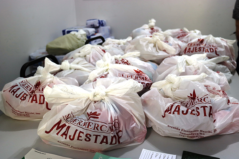 Os produtos arrecadados foram separados em cestas básicas para serem entregues a escolas municipais e ao Hospital Beneficente São João.