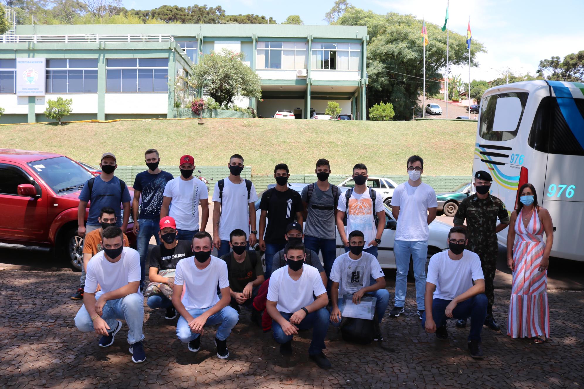 No início da tarde desta segunda-feira (22), 17 jovens sananduvenses embarcaram para Santiago/RS para prestação do serviço militar obrigatório.