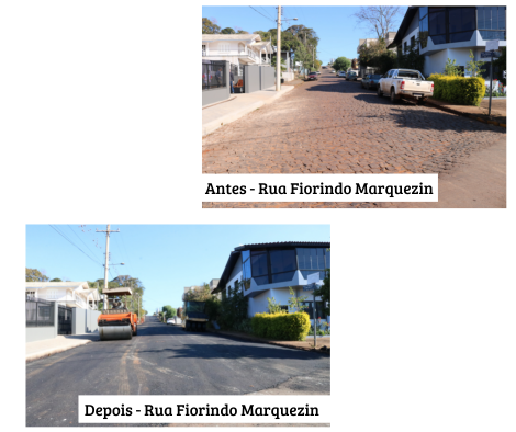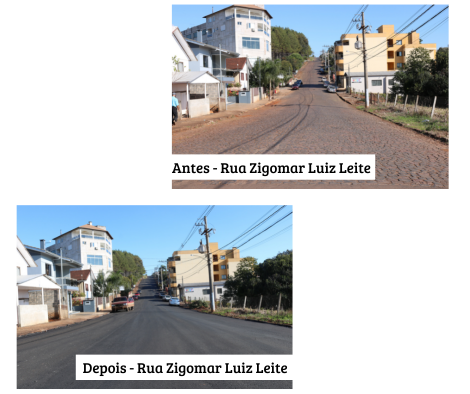 Para o prefeito Vermelho Pansera, as obras de melhorias trazem benefícios à população. “Além de melhorar a trafegabilidade, as vias pavimentadas dão acesso a empresas do município e, também, fazem ligação com as comunidades de Linha Progresso e Nossa Senhora do Carmo. Nossa meta é atingir 100% de ruas pavimentadas nos próximos anos”, finaliza.