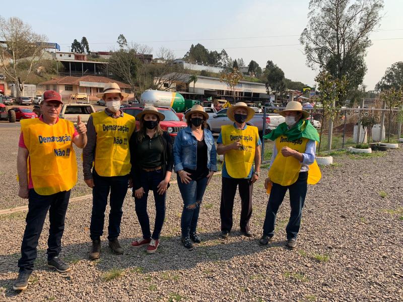 Na manhã de segunda-feira (23), o prefeito Vermelho Pansera, o assessor Leonardo Ritti e a presidente da Câmara de Vereadores Eliani Mezadri, estiveram no trevo de acesso a Getúlio Vargas onde ocorreu uma manifestação pacífica contra a derrubada do Marco Temporal no Supremo Tribunal Federal (STF). Na mobilização, agricultores e entidades reiteraram o apoio à aprovação do Projeto de Lei 490/2007, que tramita no Congresso Nacional.
