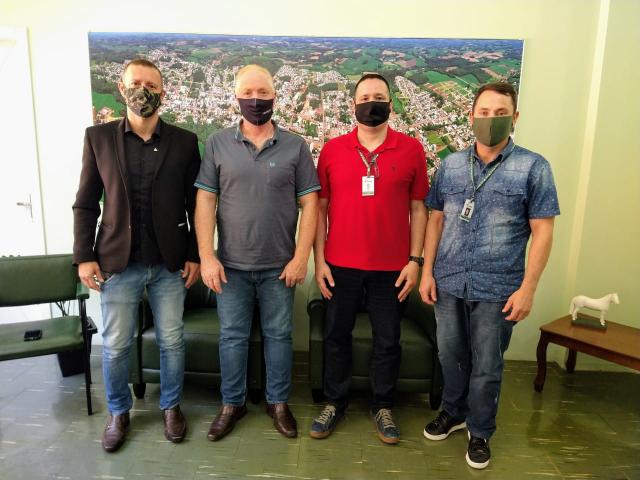 O prefeito Vermelho Pansera recebeu na quinta-feira (02), o Diretor do Campus Regional III da Universidade Estadual do Rio Grande do Sul (UERGS), professor Gerônimo Rodrigues Prado, o Chefe da Unidade de Sananduva, Reinaldo de Assis Kuhls dos Santos e o Coordenador do Curso de Administração da Unidade, professor Oberdan Teles da Silva.