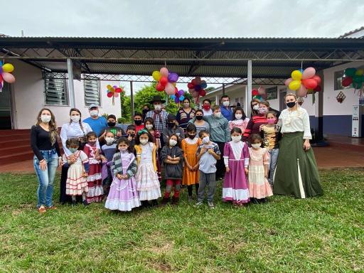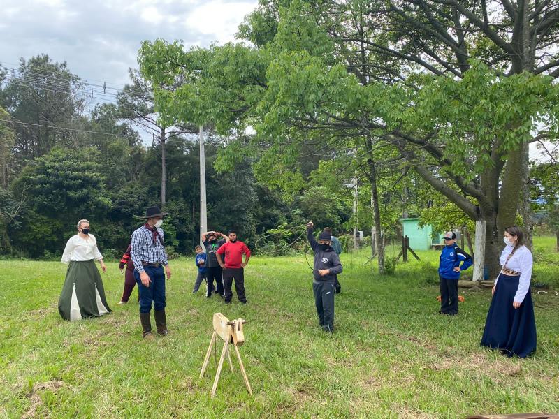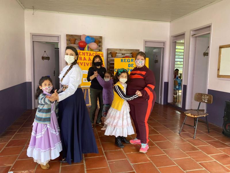 Neste mês de setembro, aconteceram ações do projeto Cultivando as Tradições Gaúchas com as crianças e adolescentes. Decoração do ambiente sobre o tema, mateada (onde cada participante pode fazer o seu próprio chimarrão), danças, músicas, trajes e alimentação típica, e, lógico, muitas brincadeiras marcaram as atividades da Semana Farroupilha. Servidores do CRAS, a primeira dama Luci Pansera e, também, Alan Pansera colaboraram com o projeto, desenvolvendo recreação de laço a vaca parada com as crianças.