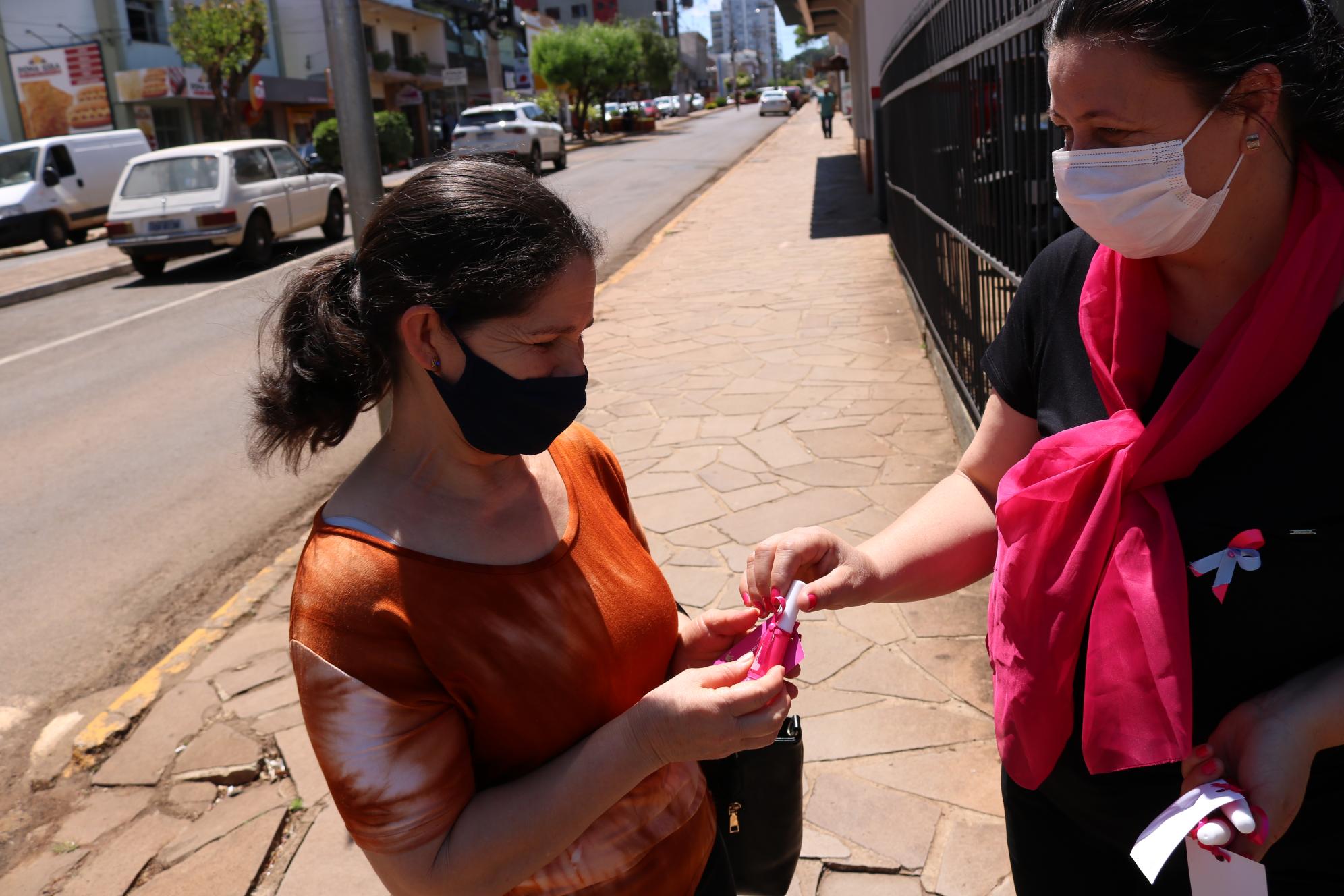 Para finalizar o mês de outubro e relembrar dos cuidados da saúde da mulher, uma ação de conscientização foi promovida pelo Governo do Município de Sananduva na Av. Salzano da Cunha, entroncamento com a Rua Carlos Raymundi, próximo à sinaleira. Servidoras vinculadas ao Centro de Referência de Assistência Social e a Primeira-Dama, Luci Pansera, distribuíram esmaltes e um cartão às mulheres que passaram pelo local.
