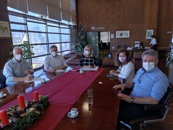 O prefeito Vermelho Pansera esteve nessa terça-feira (23), na sede do Banco de Desenvolvimento do Estado do Rio Grande do Sul S.A. (BADESUL), em Porto Alegre, para assinatura de contrato de operação de crédito. A Lei Municipal nº 3362, de 08 de outubro de 2021 autorizou o Poder Executivo a contratar a operação junto ao BADESUL, no valor de R$ 3 milhões.