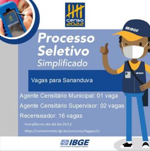Estão abertas as inscrições para processo seletivo simplificado do Instituto Brasileiro de Geografia e Estatística (IBGE). O processo visa preencher as vagas para função de Agente Censitário Municipal (ACM), Agente Censitário Supervisor (ACS) e Recenseador.
