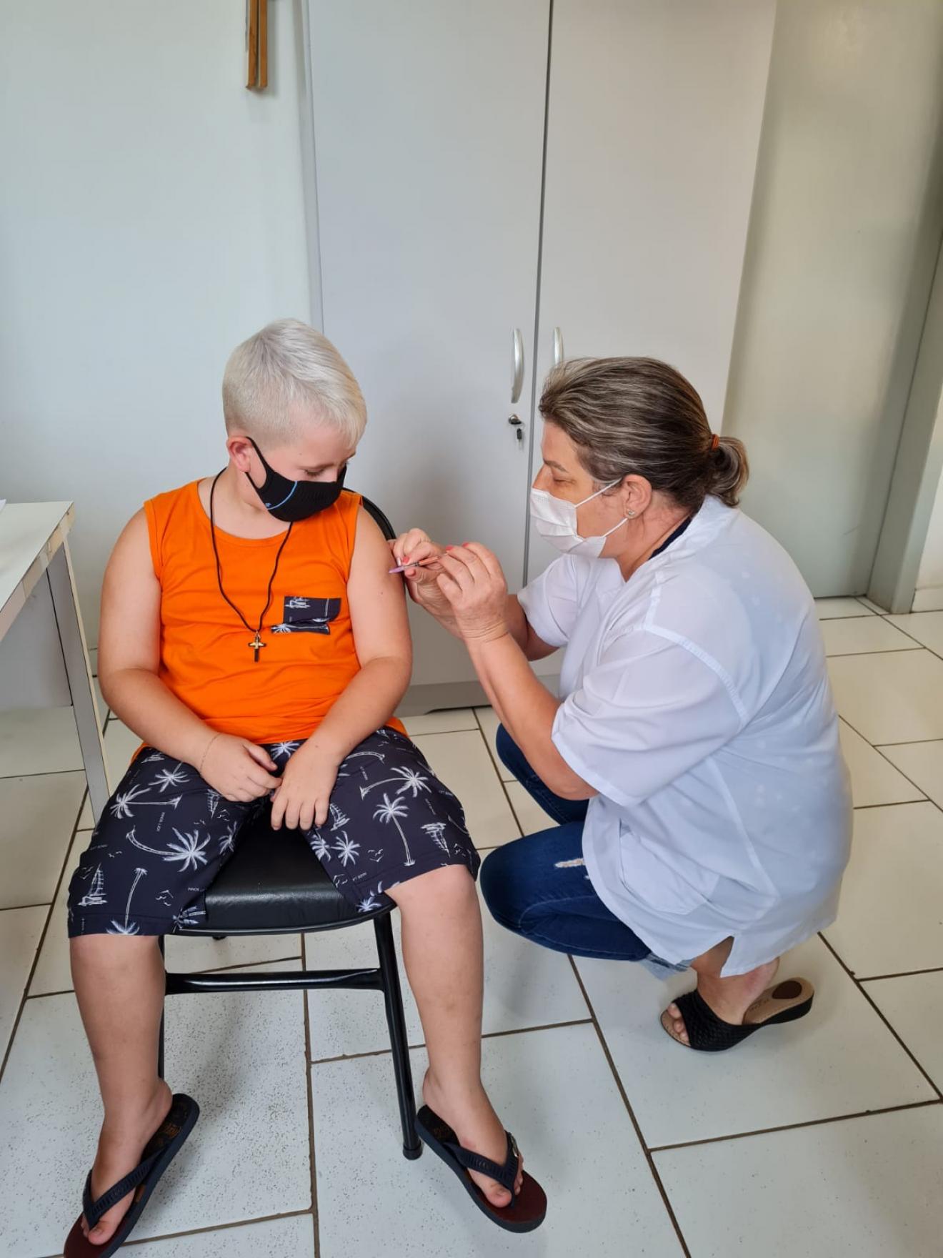 Nesta quinta-feira, dia 27, vai acontecer mais uma etapa da vacinação contra a Covid-19 para as crianças de 09, 10 e 11 anos e para crianças de 05 a 11 anos com comorbidades, somente no Posto Central, das 17h às 21h. Devido ao protocolo da vacinação infantil, o responsável pela criança deve fazer o agendamento da aplicação pelo telefone (54) 3343.3558.