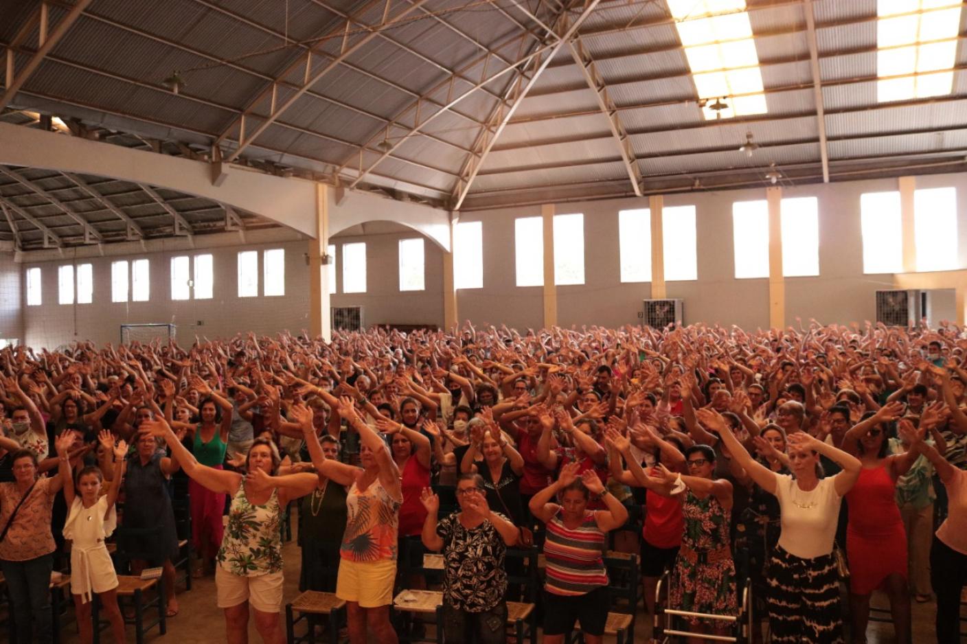 Durante a tarde, as participantes foram recepcionadas e acompanharam um momento religioso com os padres Olívio e Ivaldo e com o Pastor João Telles. Em seguida, a psicóloga Jaine Baldin Giacomini falou sobre a importância do olhar para a história de luta e da união entre as mulheres.