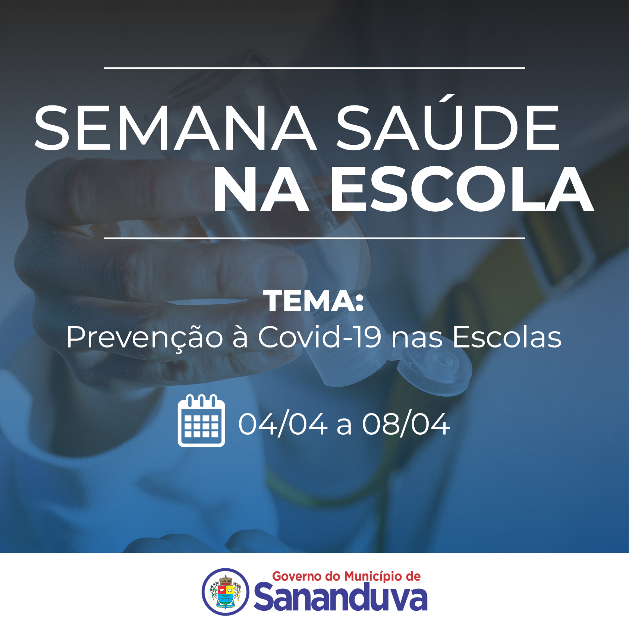 De 04 a 08 de abril vai ser realizada a Semana Saúde na Escola vinculada ao Programa Saúde na Escola para o desenvolvimento das ações do Programa. Para o ano de 2022, segundo a Secretaria de Atenção Primária à Saúde e o Departamento de Promoção da Saúde do Governo Federal, o tema definido é “Prevenção à Covid-19 nas Escolas”.