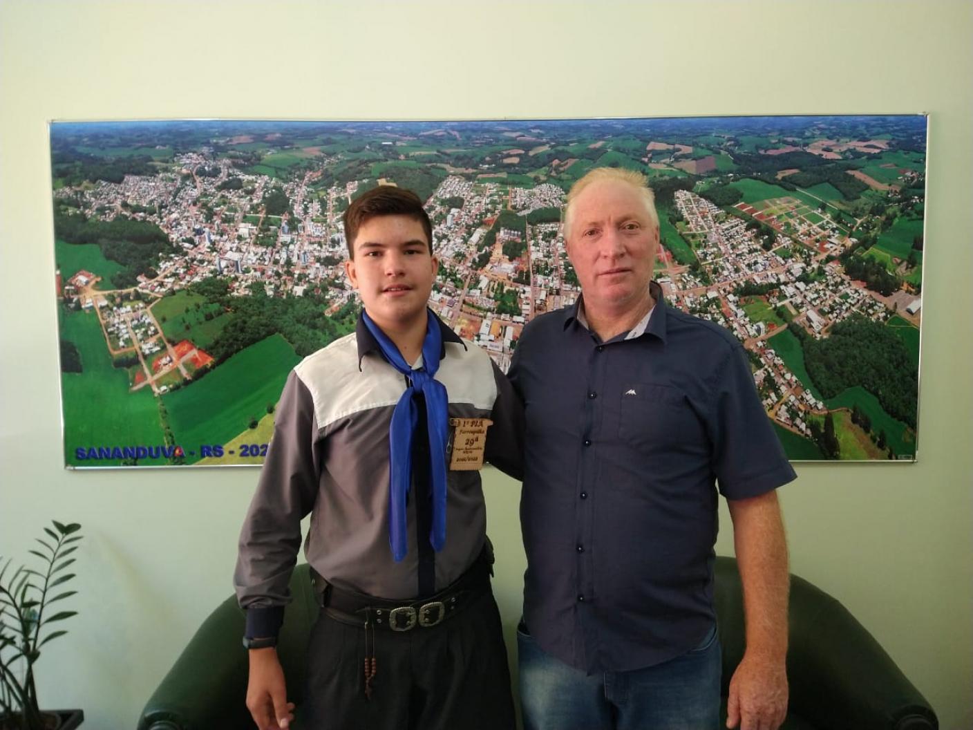 O Prefeito Vermelho Pansera recebeu em seu gabinete, na manhã desta quarta-feira (20), a visita de Arthur Miglioransa Perin, do CTG Doze Braças de Sananduva, que estará em Palmeira das Missões, de 21 a 23 de abril, mostrando suas habilidades culturais, artísticas e campeiras em disputa com todo o Rio Grande do Sul.