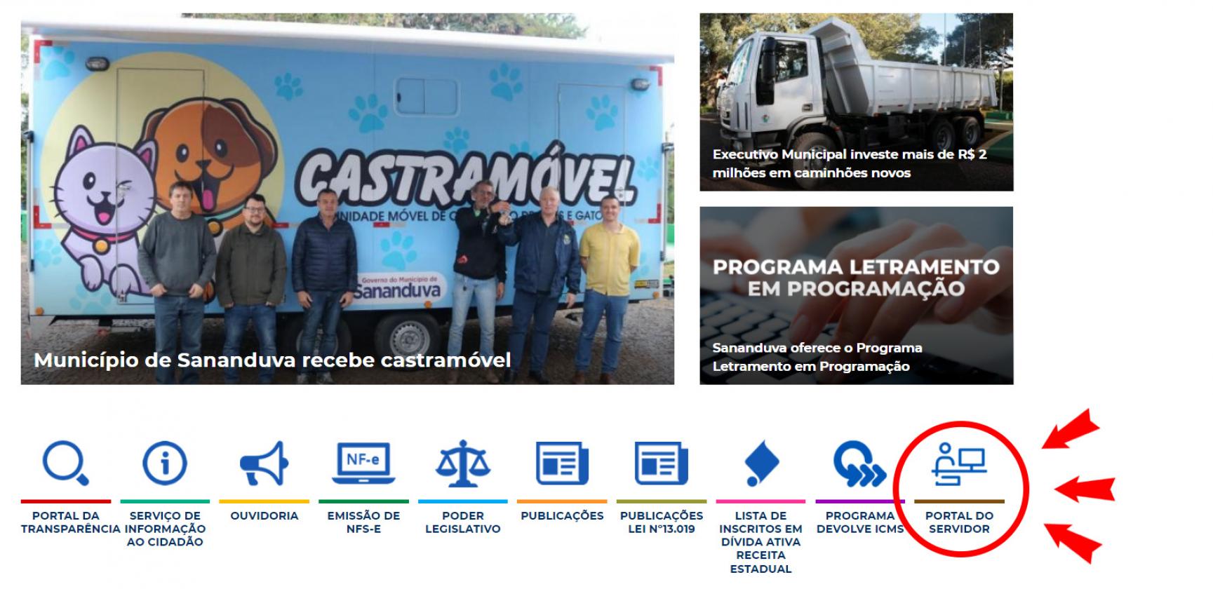 Segundo o Setor de Pessoal, a versão impressa do contracheque não será mais utilizada a partir da folha de pagamento do mês de abril e o mesmo deve ser acessado pelo Portal do Servidor, através deste link, pelo site da Prefeitura de Sananduva ou ser baixado o aplicativo “Portal do Servidor” pela Play Store para celulares Android ou na loja da Apple para celulares iOS. O primeiro acesso acontece por meio do número da matrícula e CPF do servidor.