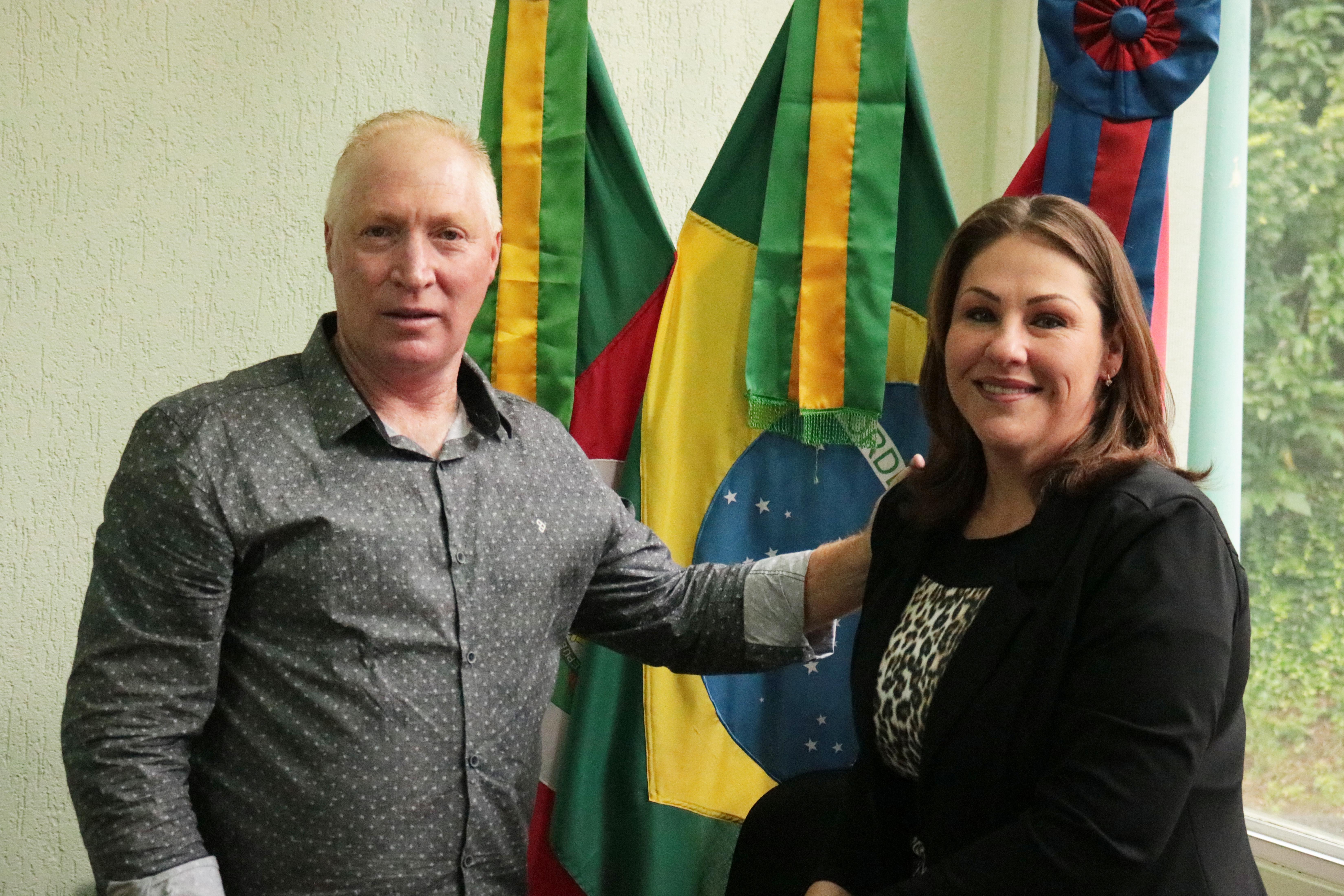Na manhã desta quarta-feira (11), o prefeito Vermelho Pansera transmitiu o cargo de Prefeito Municipal à vereadora Caroline Brezolin, presidente da Câmara de Vereadores. A cerimônia aconteceu no Gabinete do Prefeito e foi acompanhada por autoridades, convidados, servidores e imprensa.