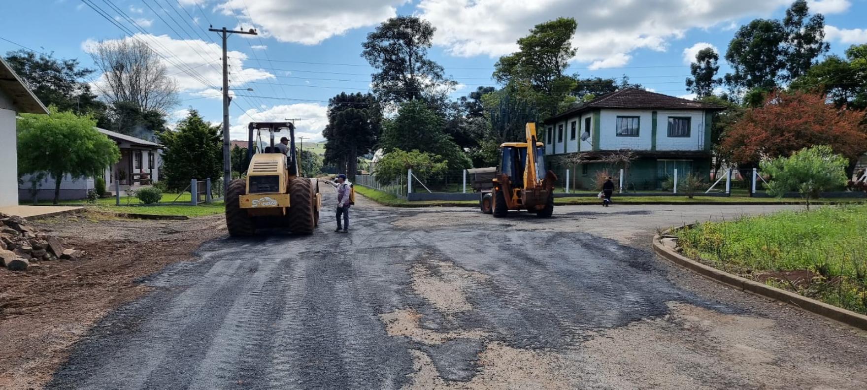 Na manhã de quinta-feira (12), a prefeita em exercício Caroline Brezolin e o diretor de projetos Carlos José Picolotto acompanharam o início das obras para receber a pavimentação asfáltica em diversas ruas do bairro Vila Nova. Caroline Brezolin esteve na Rua Clovis Luiz Savi, na divisa entre o loteamento Perin e a Vila Nova.