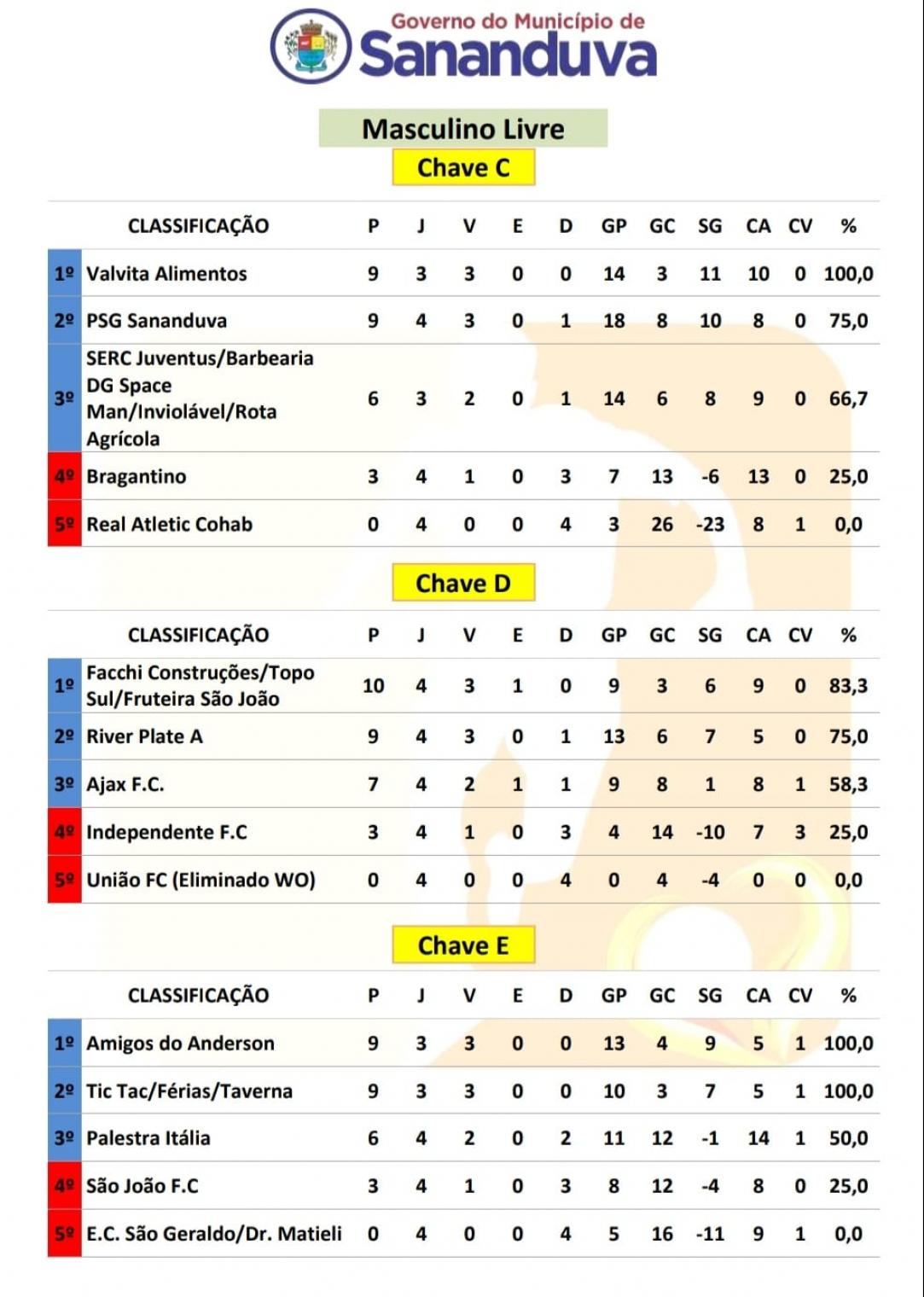 Confira os resultados da oitava semana dos jogos, juntamente com a classificação e artilharia de todas as categorias da competição: