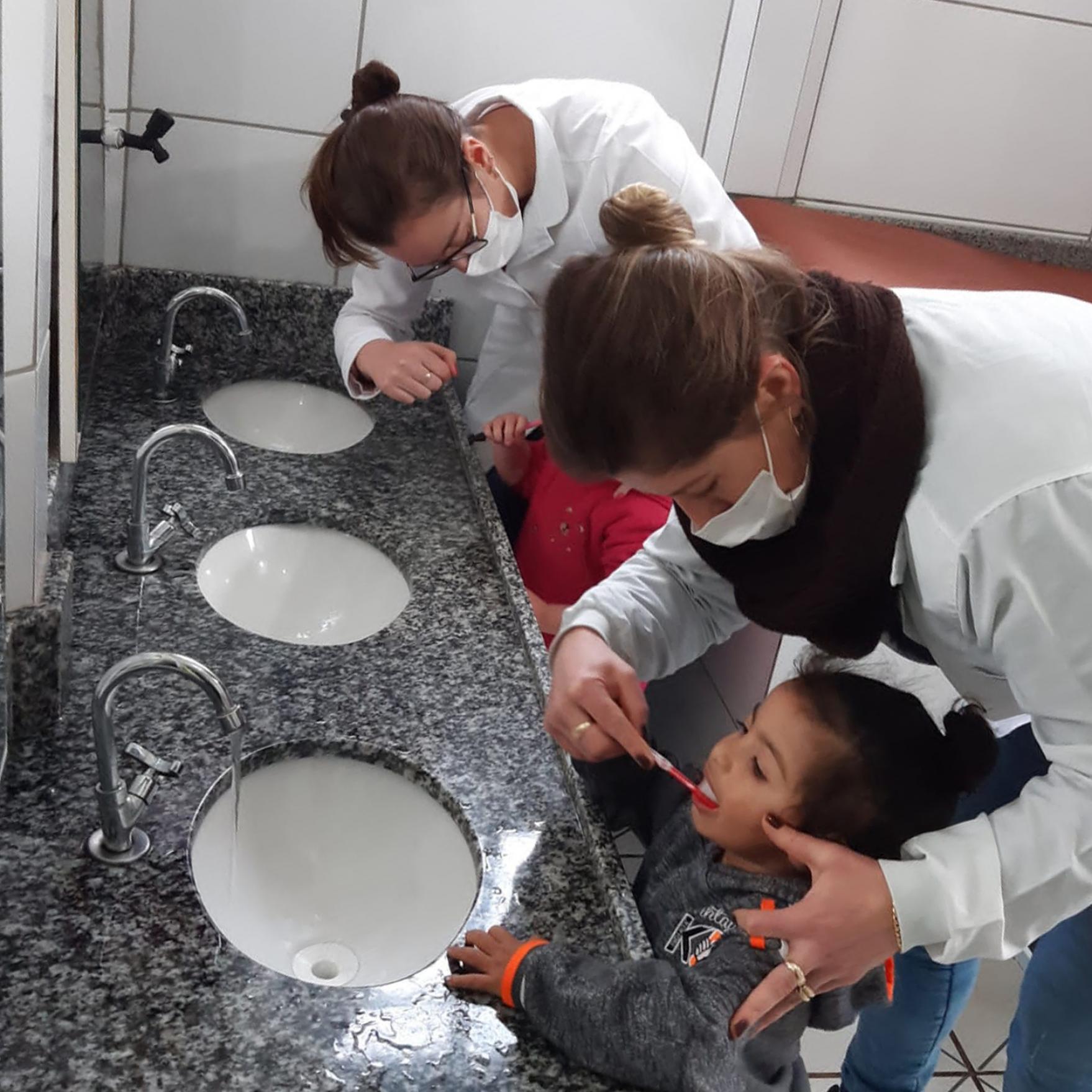 Da UBS São José Operário, a dentista Caroline Cirino Rodrigues e auxiliar em saúde bucal Doriane Savi palestraram para os alunos da E.M.E.F. Prof.ª Eldy Maria Pansera sobre a importância da higiene bucal, e em seguida foi realizada a escovação supervisionada com os alunos do pré-escolar ao 9º ano. As profissionais também estiveram na E.M.E.I. Mundo Encantado.