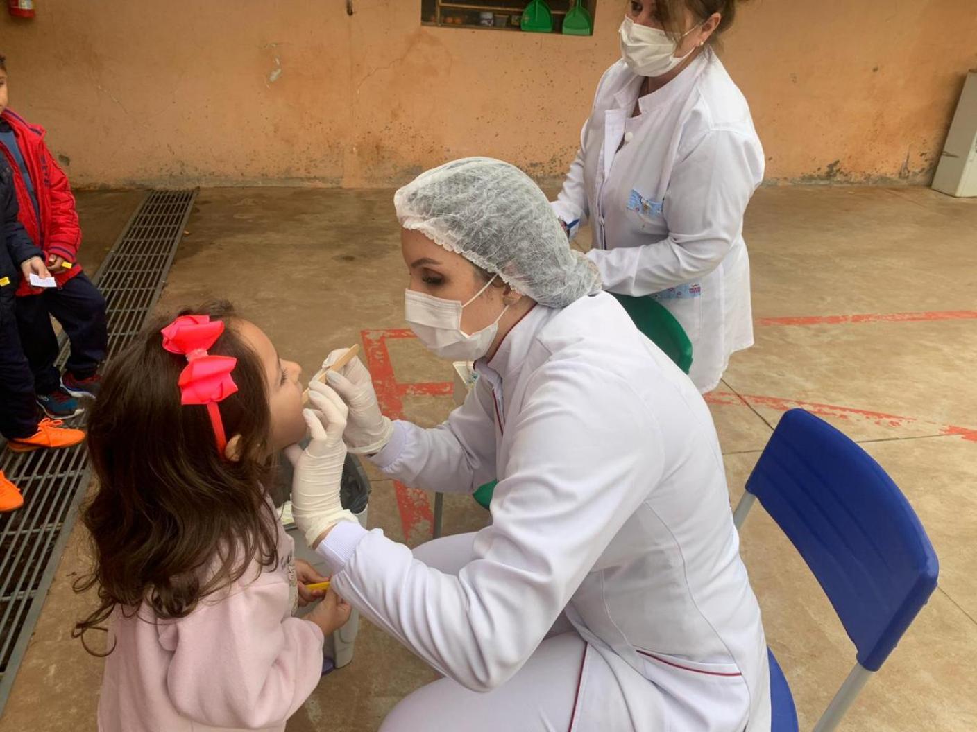 Os alunos da E.M.E.I. Tia Salete e da E.M.E.I. Nona Amábile foram orientados na escovação supervisionada pela dentista Suelem Cardoso e pela auxiliar Marina Spanhol. As profissionais também realizaram uma palestra e a escovação de dentes com os alunos da E.M.E.F. Assis Brasil, na comunidade de São Pedro.