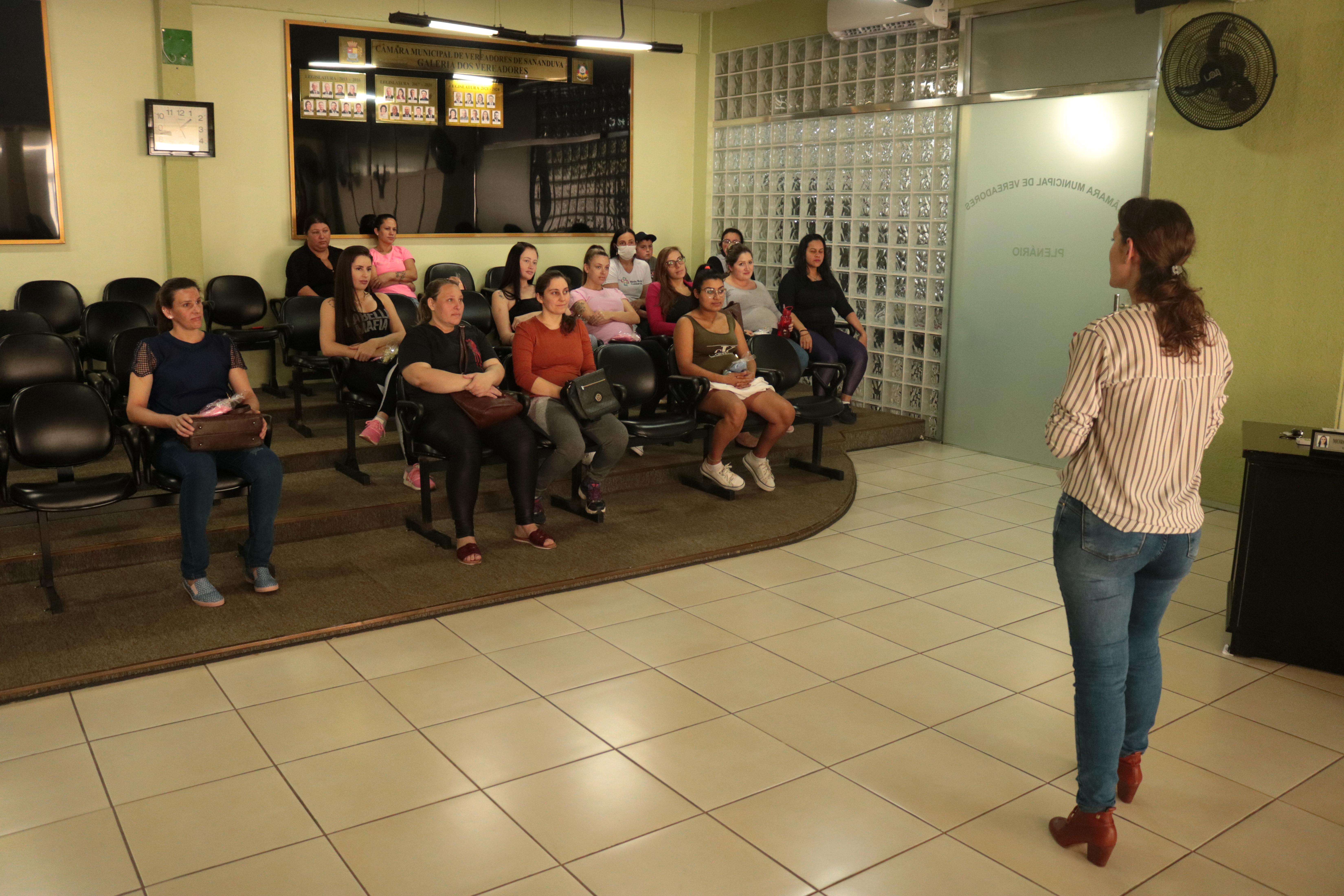 No Encontro realizado na Câmara de Vereadores, a nutricionista Glaucia Remuzzi Foscarini explanou sobre a “Alimentação da gestante e da criança até um ano de idade”. Já a educadora física Alexandra Macedo Simão proporcionou um momento de atividade física para as gestantes.