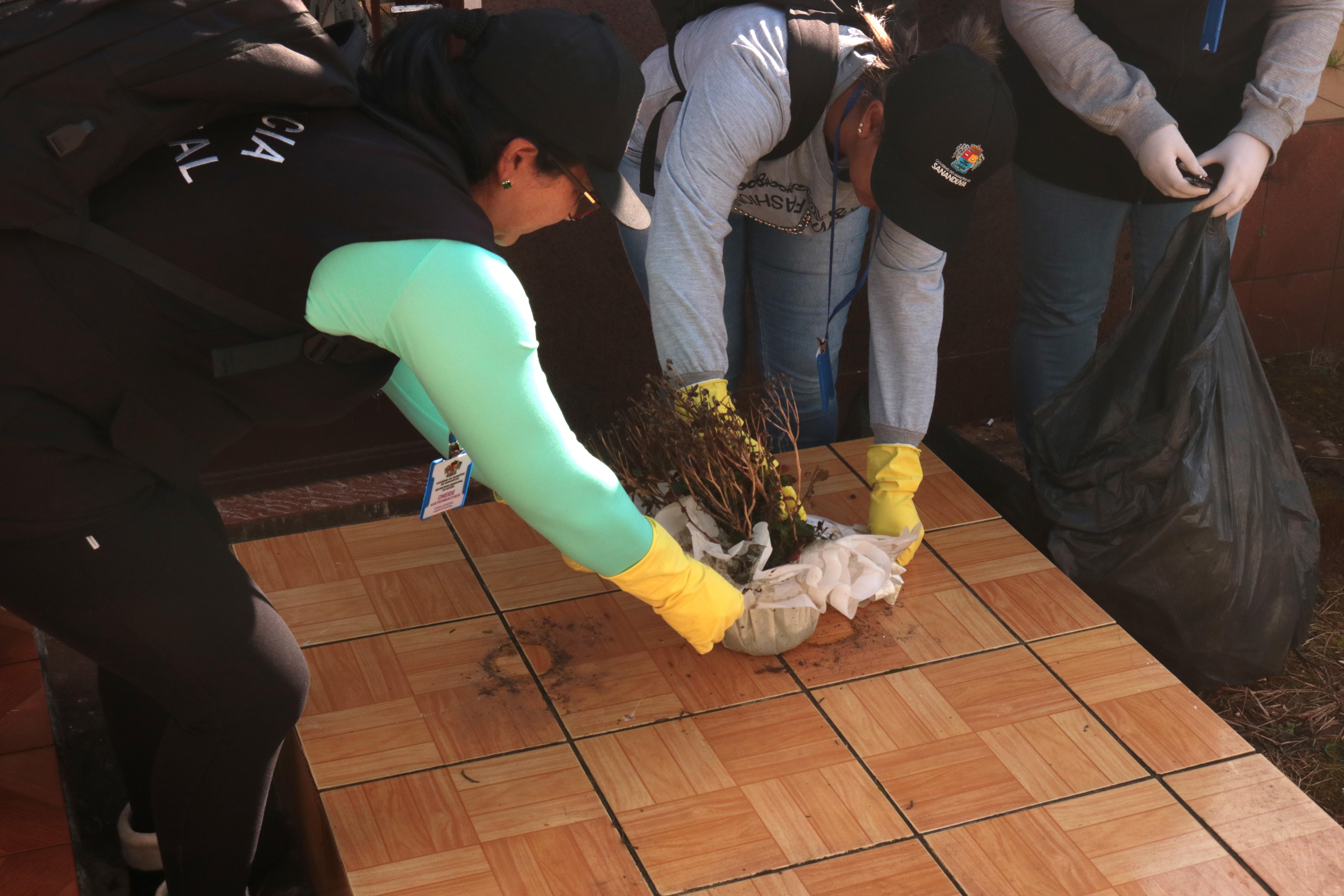 Na última semana, as agentes de combate à endemias e de saúde, vinculadas à Secretaria da Saúde, realizaram uma vistoria no Cemitério Municipal Papa João Paulo II, a fim de eliminar possíveis criadouros do mosquito Aedes aegypti, causador de doenças como a dengue, zika e chikungunya.