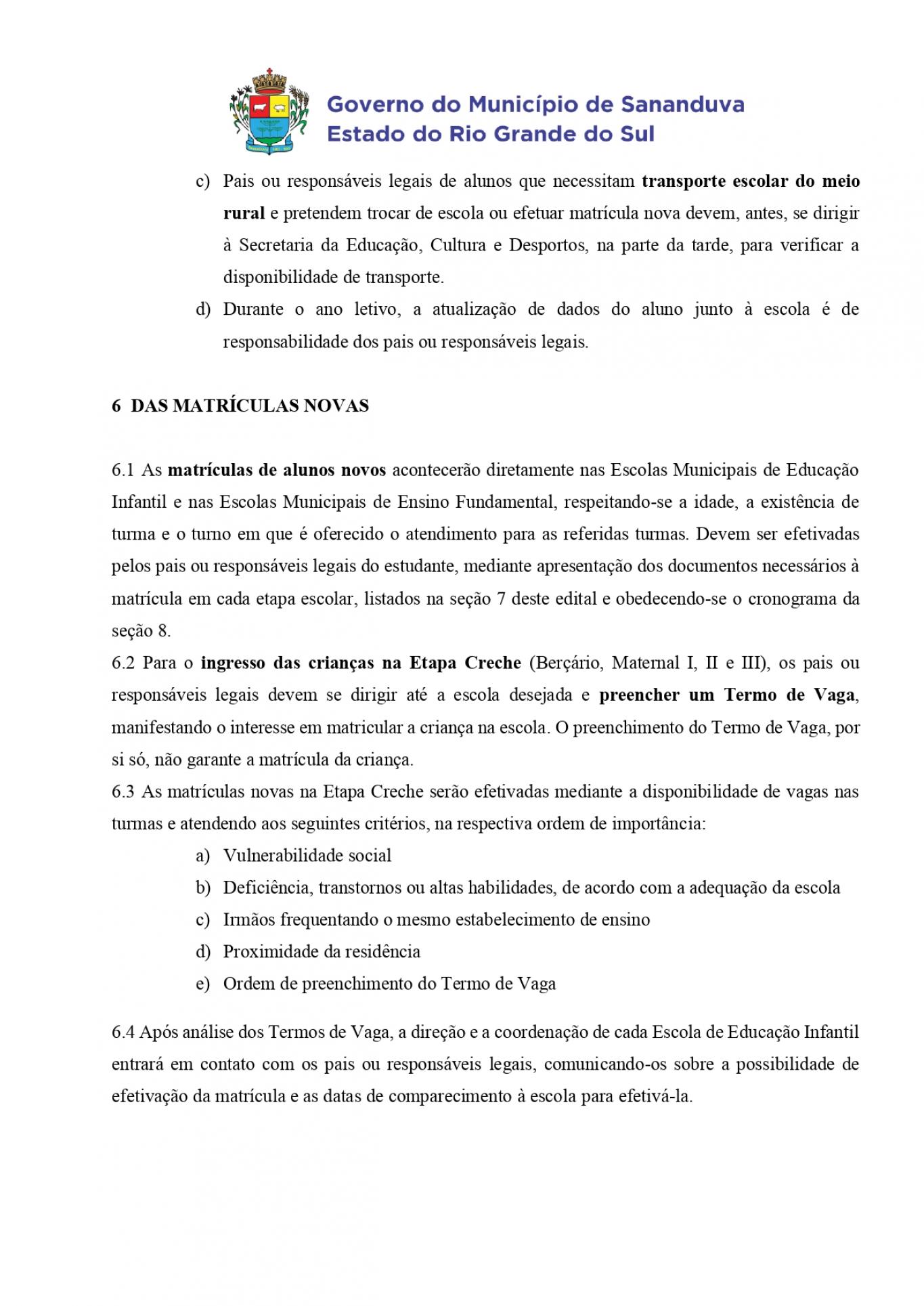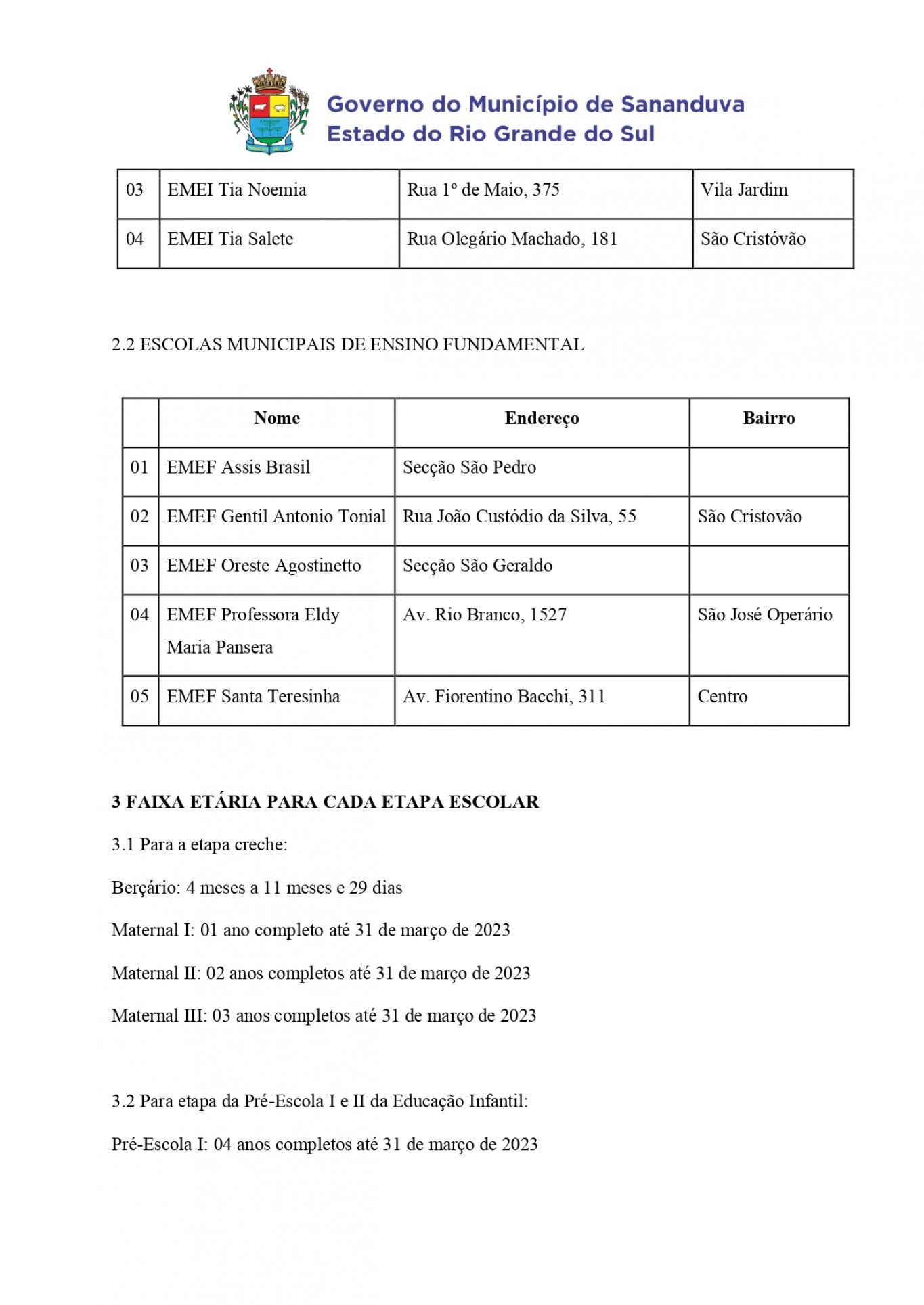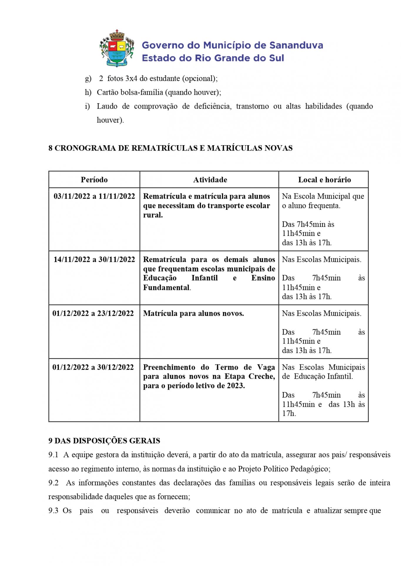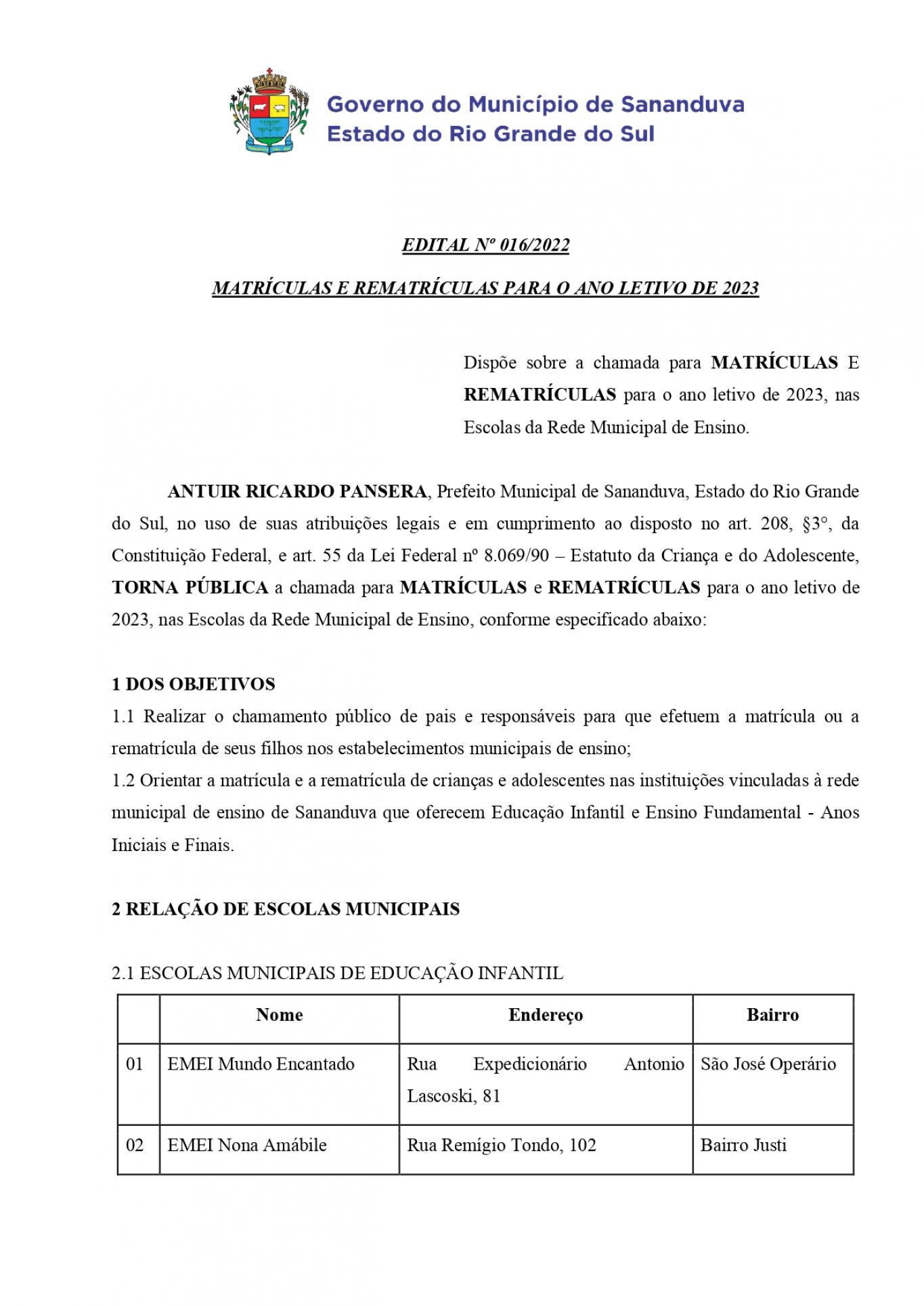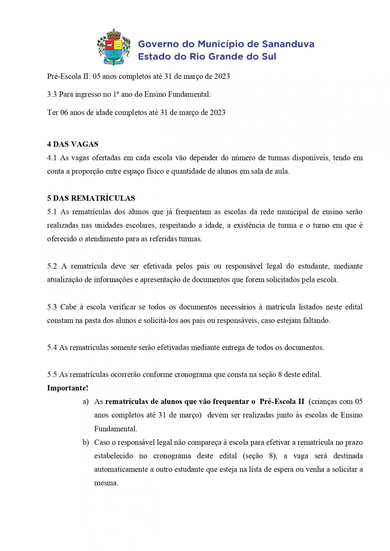 No edital a seguir você pode conferir o cronograma de datas para matrículas e rematrículas, os documentos necessários, a faixa etária para cada etapa escolar, e o endereço das escolas.