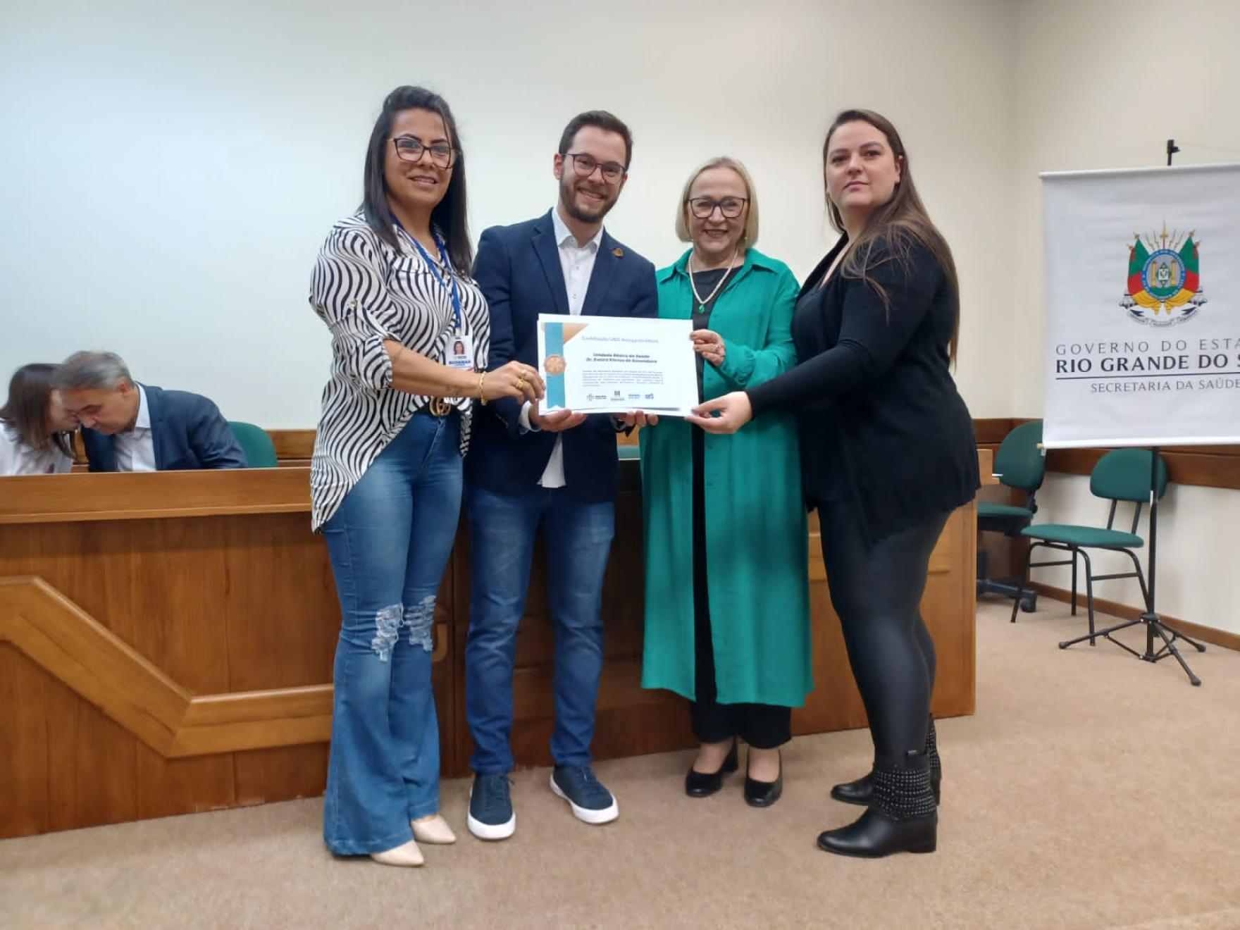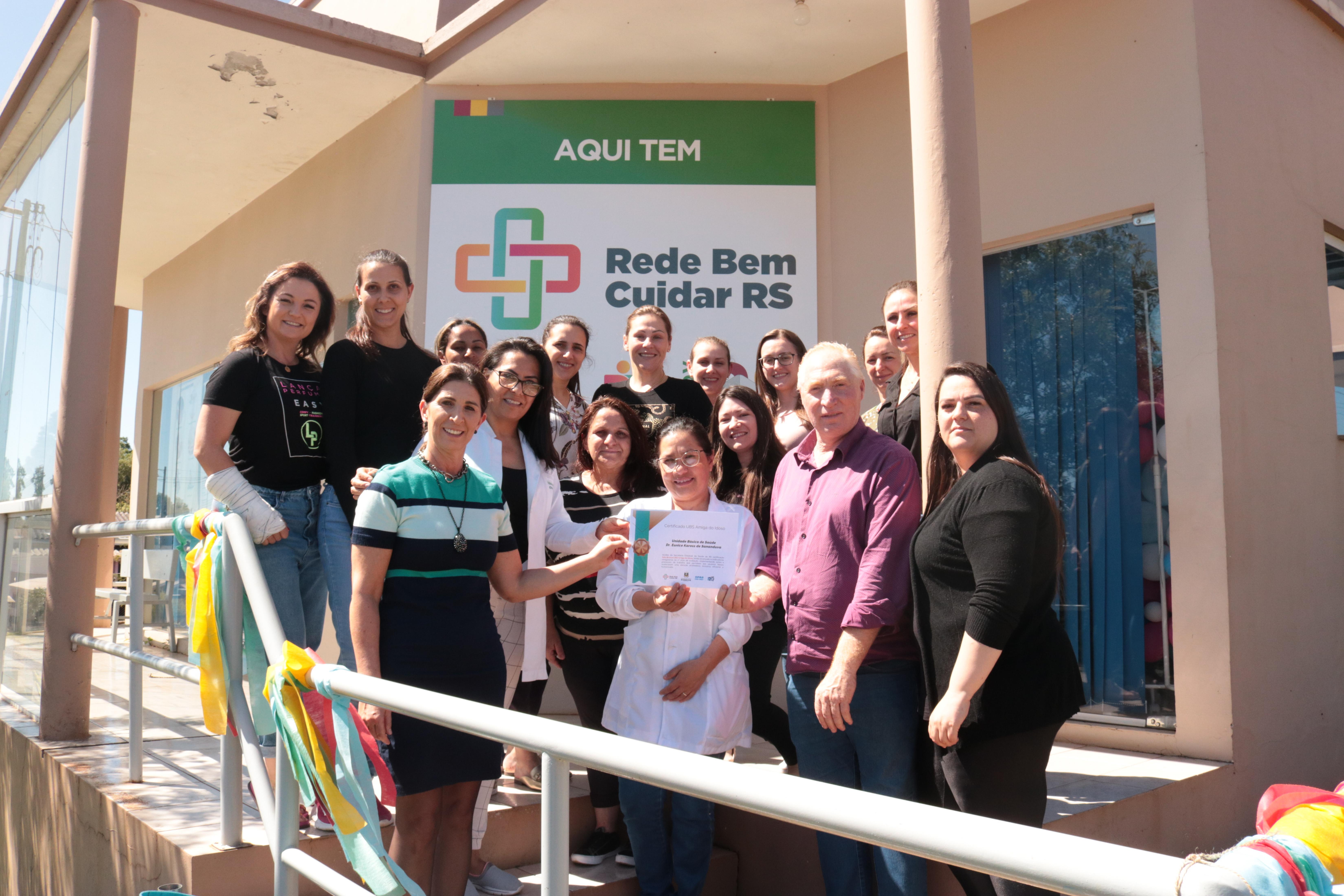 Para garantir atendimento diferenciado à população idosa, o Governo Municipal aderiu ao Programa Rede Bem Cuidar RS, da Secretaria da Saúde do Estado do RS. Recentemente, a assessora da secretaria da Saúde Carine Fabiani e a enfermeira Rosemar Portella Wilhelm receberam o Certificado UBS Amiga do Idoso – selo bronze, da secretária estadual da Saúde, Arita Bergmann pelos cumprimentos das metas do Programa. O Certificado foi repassado a todos os profissionais que trabalham na Unidade Básica de Saúde Dr.ª Eunice Morales Kaross.