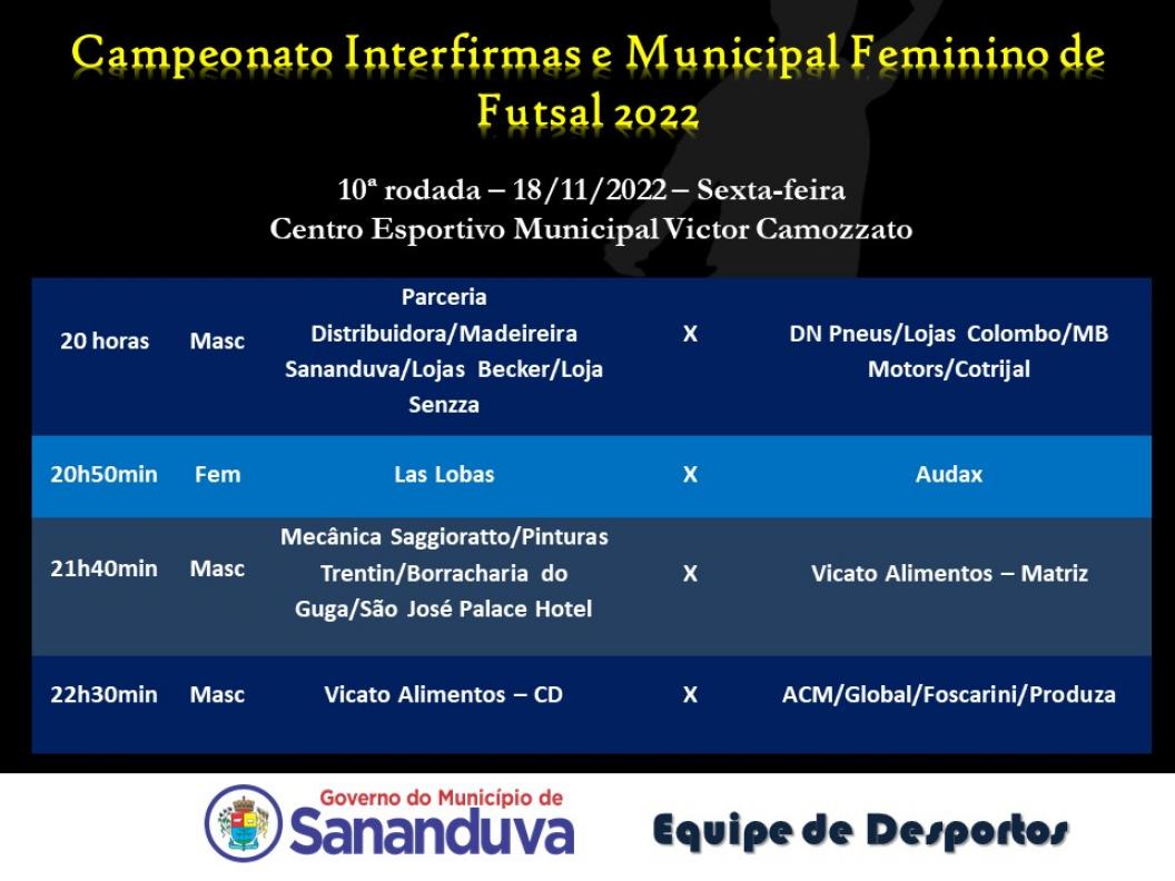 Na última semana findou mais uma rodada de jogos do Campeonato Interfirmas e Municipal Feminino de Futsal 2022.