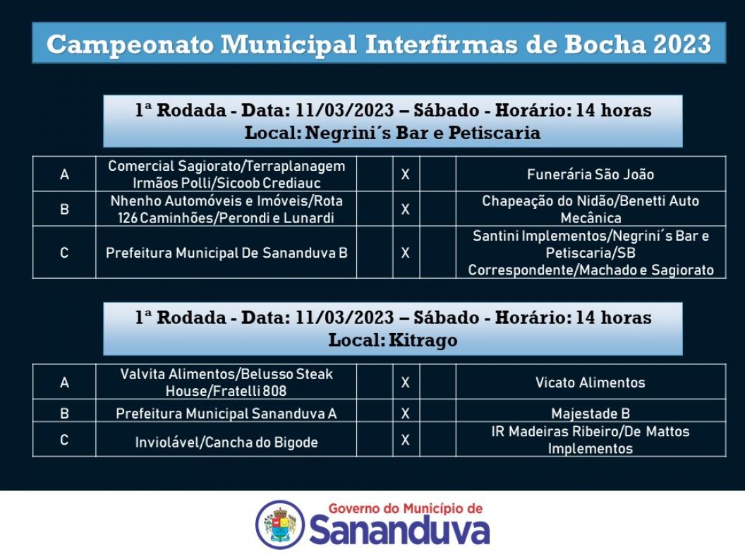 O Campeonato Municipal Interfirmas de Bocha 2023 é uma promoção do Governo do Município de Sananduva e uma realização da Equipe de Desportos.