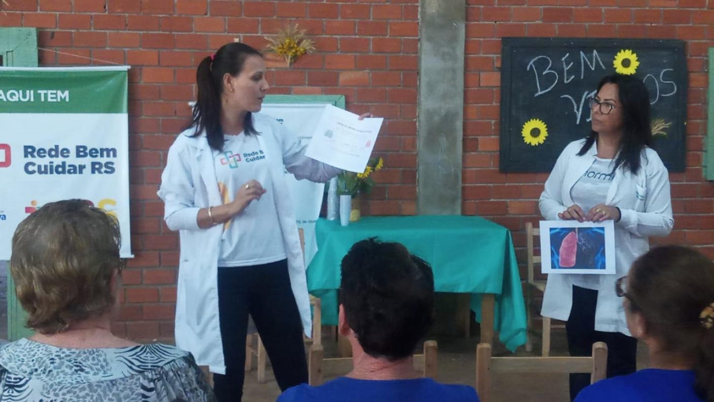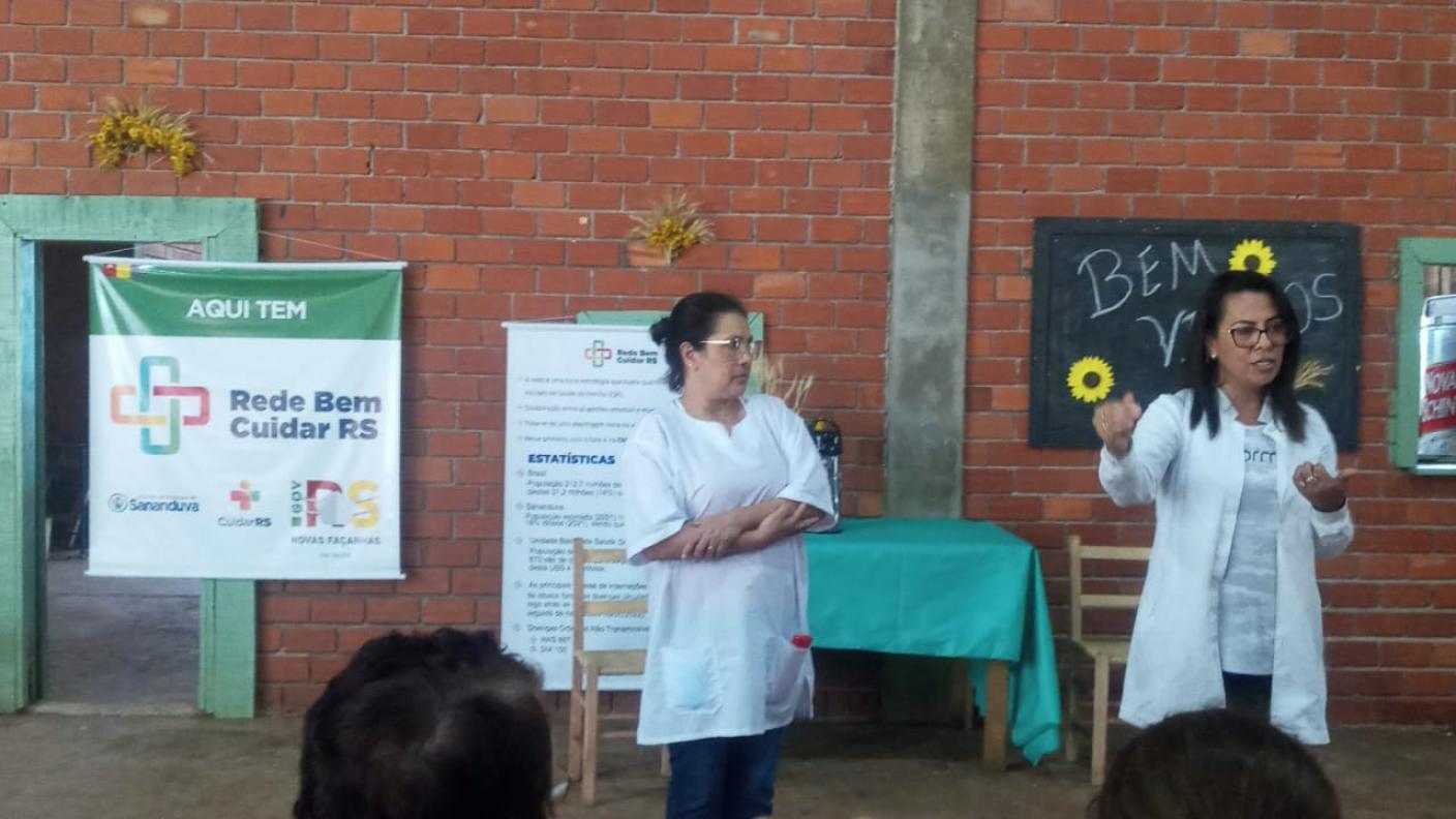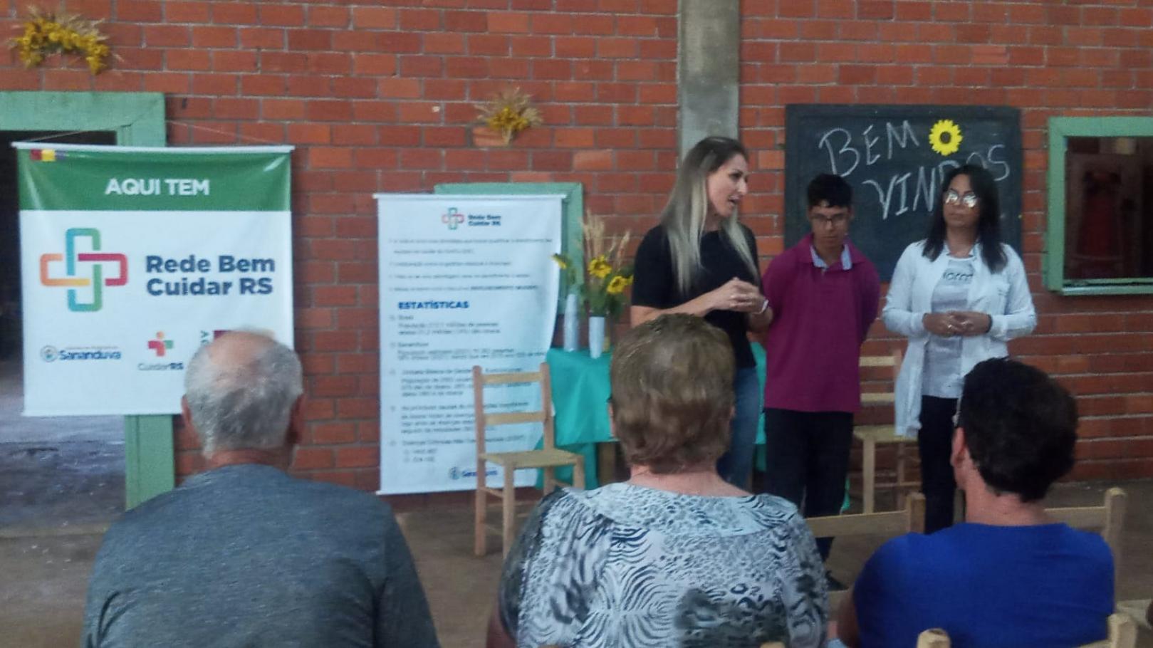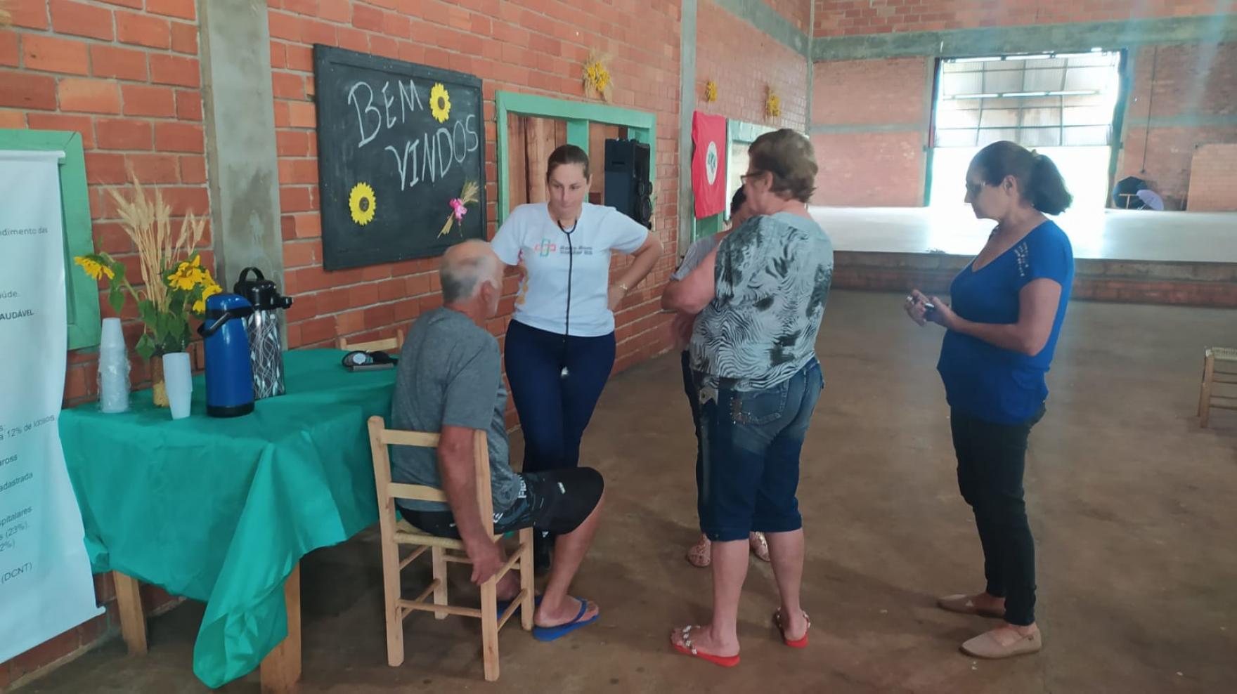 Outra ação iniciada pelas profissionais da saúde da UBS é a realização de Mini Feiras da Saúde nas comunidades do interior. As primeiras edições aconteceram nos dias 07 e 14 de março, no Assentamento Três Pinheiros e na comunidade de Santo Antônio dos Fagundes, respectivamente. “Explanamos aos idosos presentes sobre a Rede Bem Cuidar, a saúde do idoso e o envelhecer saudável. Também realizamos aferição da pressão arterial, testes rápidos de HGT, Hepatites B e C, Sífilis e HIV”, comenta a enfermeira Rosemar Portella Wilhelm.