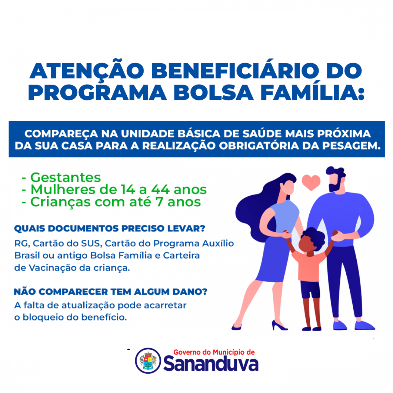 É preciso portar RG, Cartão do SUS, Cartão do Programa Bolsa Família ou do antigo Auxílio Brasil e Carteira de Vacinação da criança. O prazo para atualização vai até o final do mês de maio e o não comparecimento pode acarretar no bloqueio do benefício.