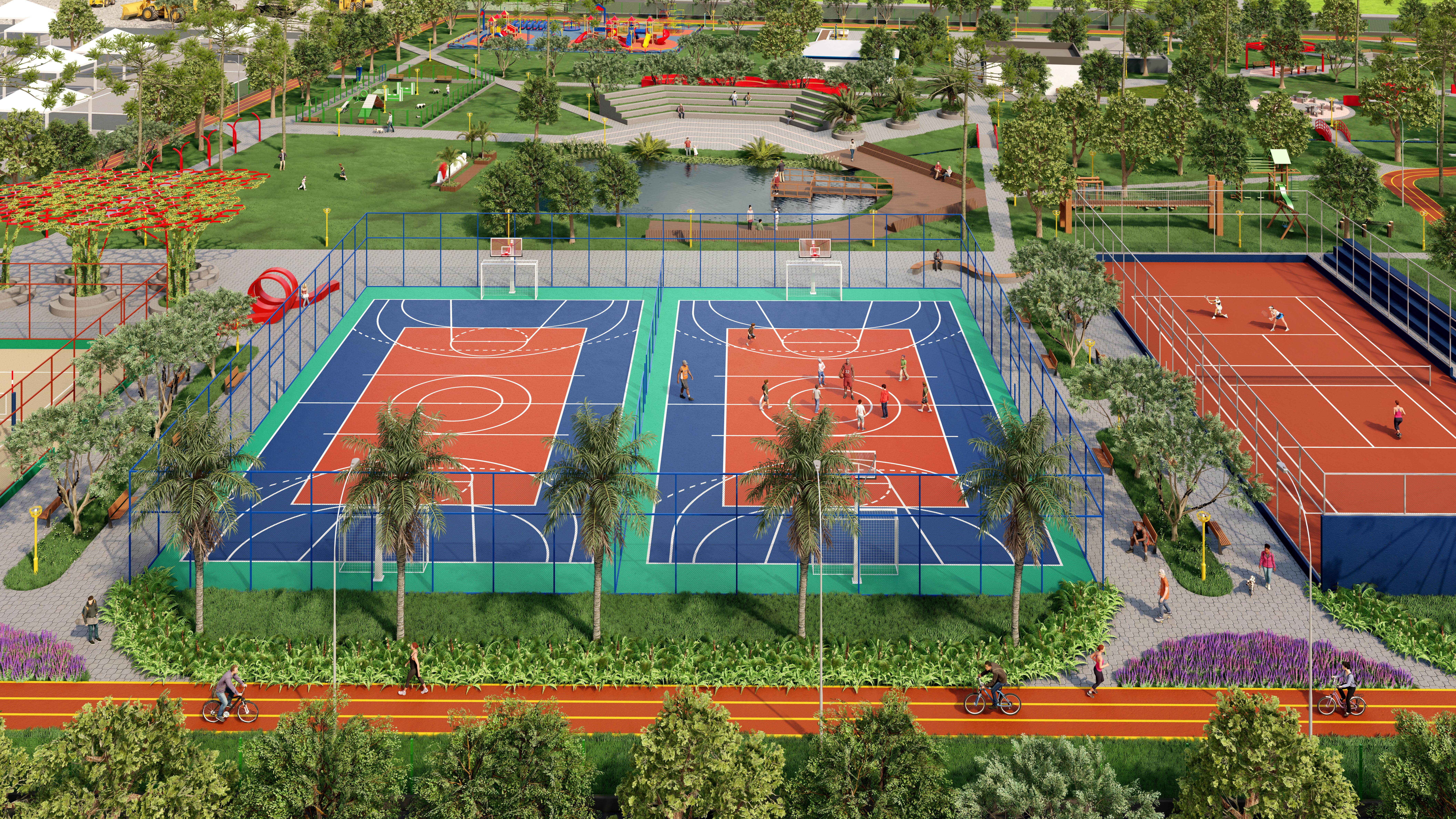 Projetado em 5,78 hectares, o espaço vai contar com ciclovia, pista de caminhada, chimarródromo, quadras de vôlei de areia, quadra de tênis, quadra poliesportiva, academia ao ar livre, pet park, pista de skate, playground, banheiros, lago com deck, anfiteatro, paisagismo e vários espaços para convivência.