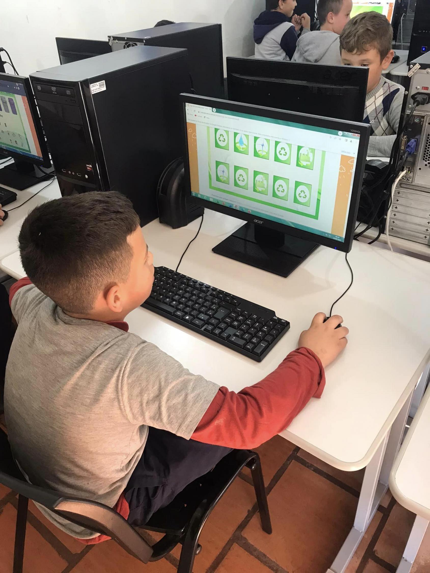 Além disso, os alunos do 2º ao 4º ano tiveram a oportunidade de participar de jogos educativos sobre sustentabilidade na sala de informática. Essa atividade lúdica despertou a curiosidade e o interesse das crianças em relação aos cuidados com o meio ambiente, ensinando conceitos valiosos de forma acessível e divertida.